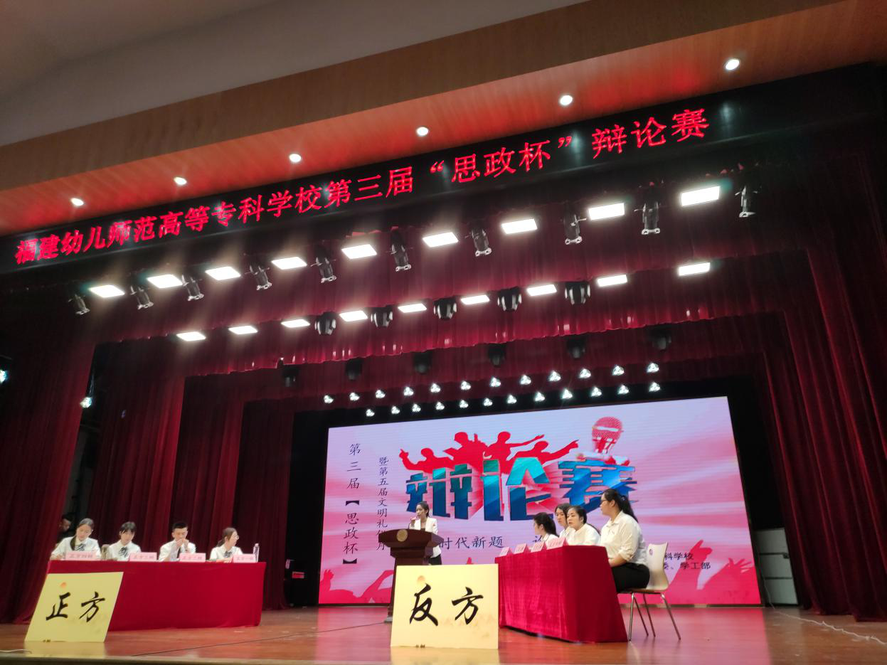为了强化我校青年学子的使命与担当,锻炼思辨能力和表达能力,弘扬校园文明礼仪,我校于2019年5月17日下午在仓山校区礼堂举办了第三届"思政杯"大学生辩论赛暨第五届文明礼仪月活动。此次活动由马克思主义学院、校团委、学工部承办,校辩论社协办。校党委鲍仕梅书记、校长陈峰以及校党委副书记、纪委书记莅临了本次活动。质保办陈忠辉主任、学工部严桂泉部长、公共教学部郑伟副主任、马克思主义学院伊文婷院长以及校团委唐川书记担任本次辩论赛的评委。