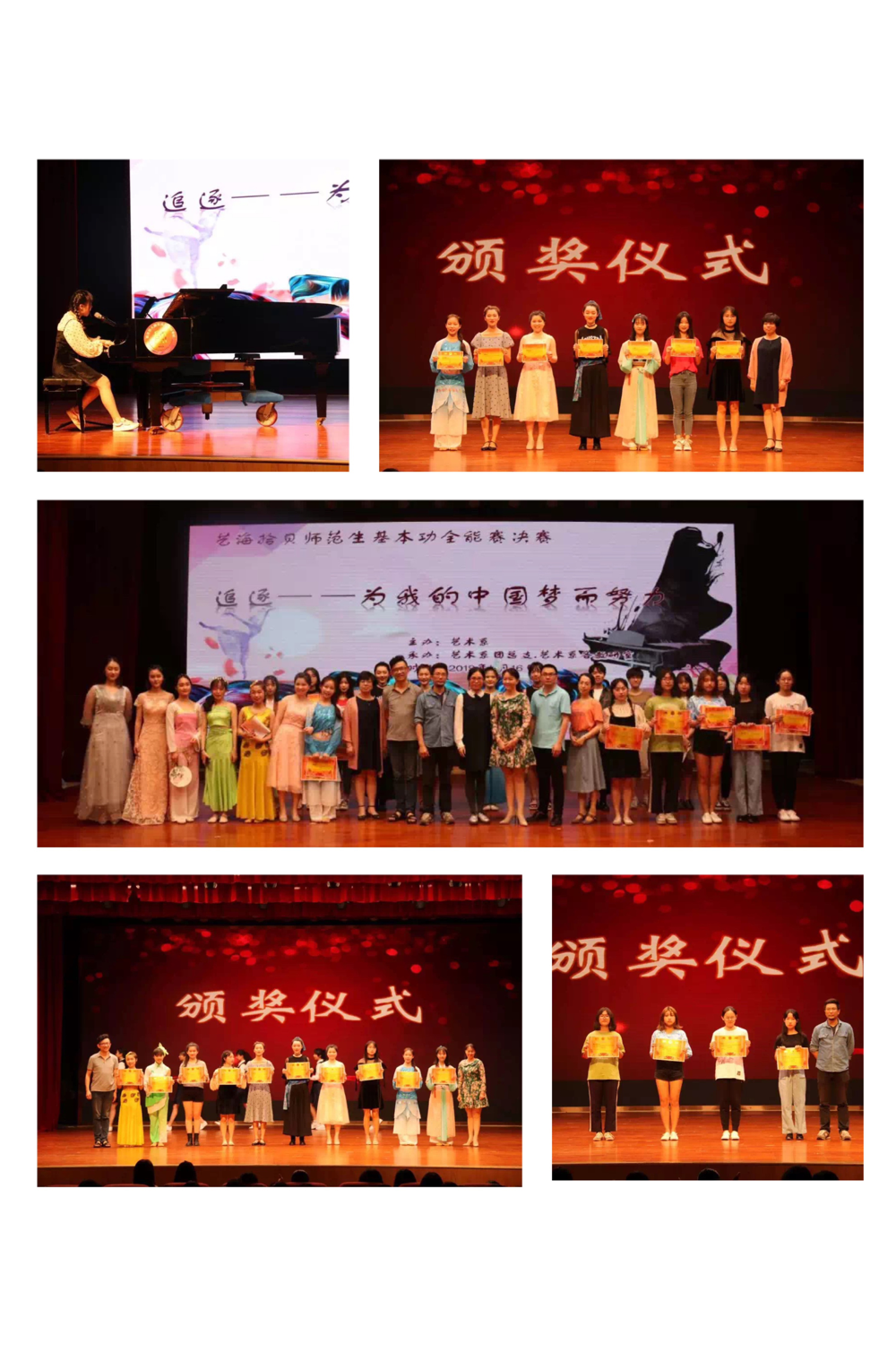 2019年5月16日,我系于礼堂举行了"艺术系2019年'艺海拾贝'师范生基本功全能赛(音乐类)决赛"。莅临本场全能赛的评委老师有:艺术系实践教研室主任陈纯灵老师,声乐教研室主任梅丛笑老师,舞蹈教研室主任马伟力老和键盘教研室吴秀琴老师。艺术系党总支书记、主任王萍萍教授,党总支副书记刘舒敏,以及各年级辅导员也到场观看了本次比赛。