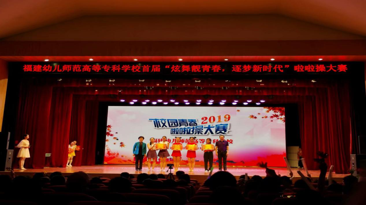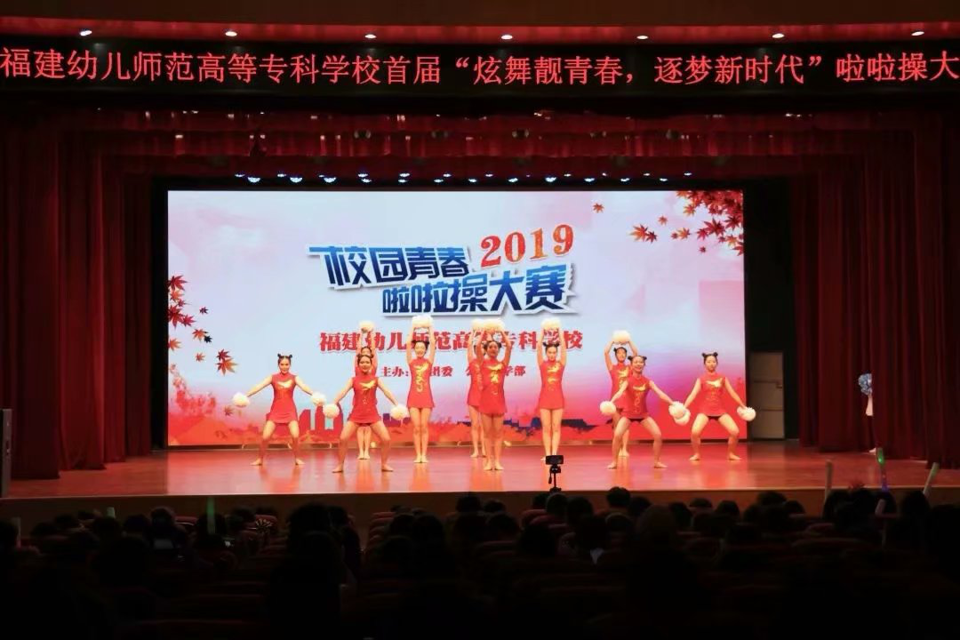 2019年5月24日14时,福建幼儿师范高等专科学校2019啦啦操大赛(总决赛)在仓山校区礼堂举行。本届赛事由公共教学部和校团委共同主办,共有15支队伍参与角逐。校党委书记鲍仕梅、校长陈峰、校团委书记唐川、公共教学部主任王奕,以及各处室、系部领导等出席本次活动。比赛现场裁判由体育教研室卓存杭副教授、廖怡芳老师、谢琳焱老师及彭丹老师担任。