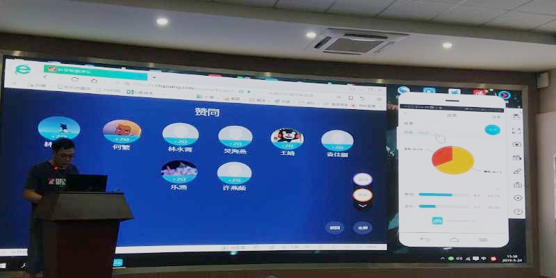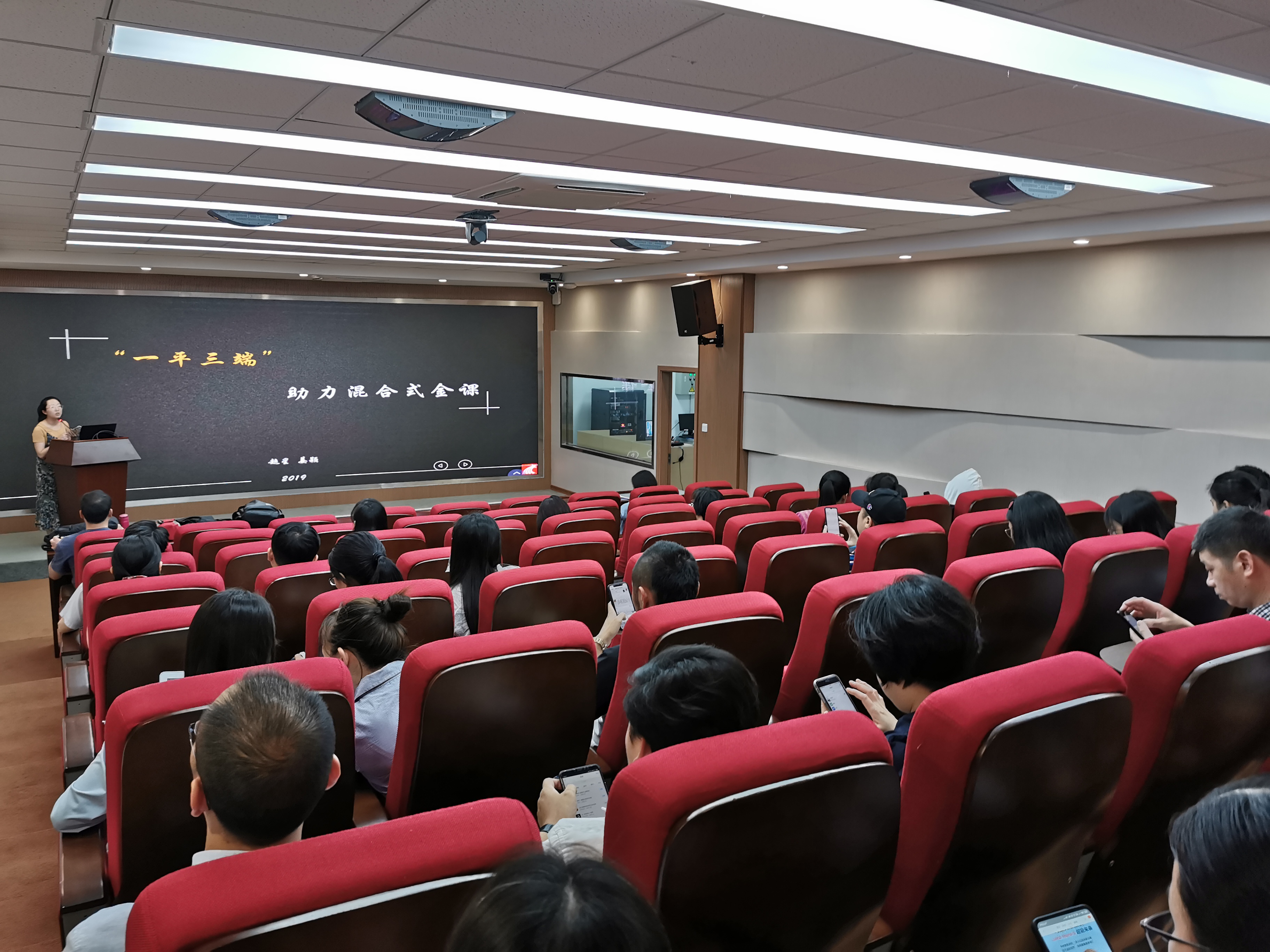 随后教师们又参加了由超星集团福建分公司姜颖讲师带来的题为《"一平三端"助力创新教学》讲座。讲座基于超星集团开发的网络资源学习平台,介绍了"移动端""教学端""管理端"三大端口的功能及特点,演示了移动终端设备在课堂教学的知识传递、讨论互动、数据收集、作业批阅等方面的功能,并邀请到场的教师们体验相关的功能。