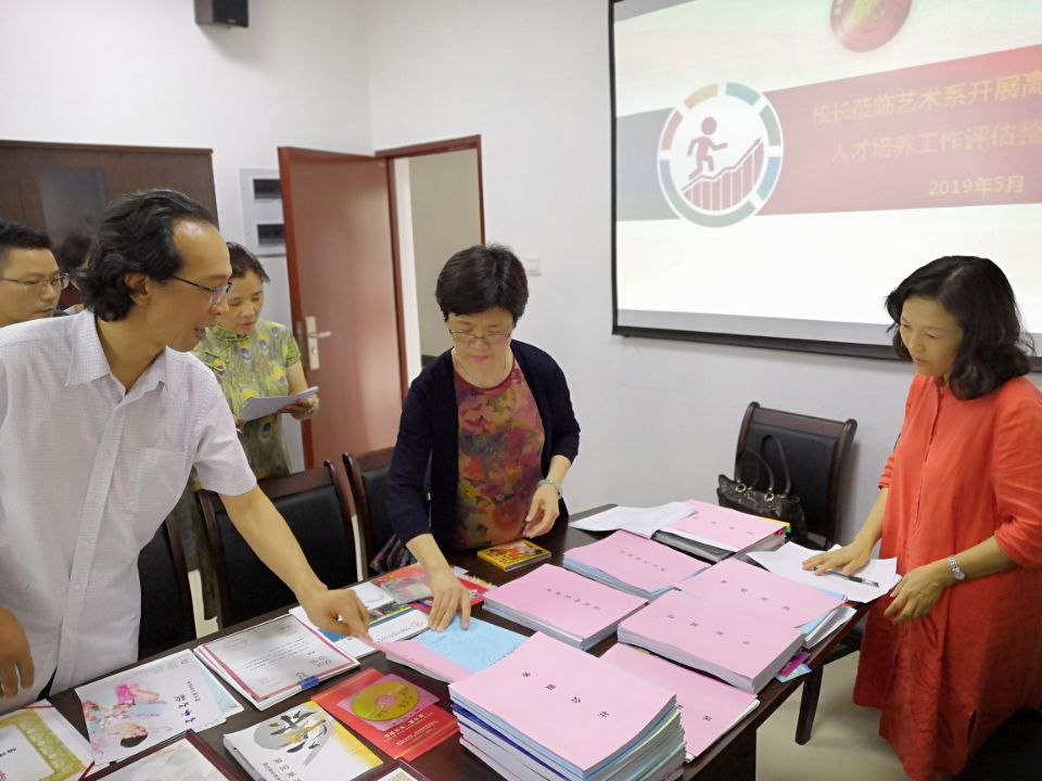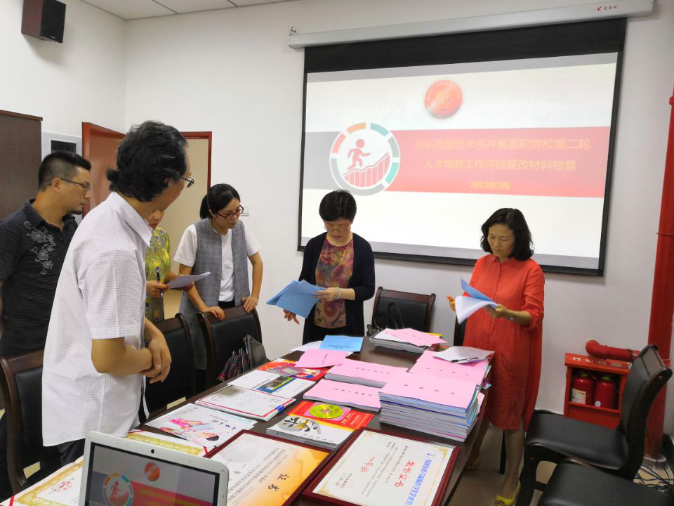 陈峰校长带领学校检查组认真细致地检查艺术系评建材料
