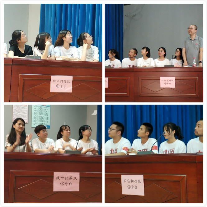 主题知识竞赛于5月24日进行了初赛,30位学生党员、积极分子参加笔试,从中选拔12名优秀学生代表参加决赛。参加今天决赛的四支队伍,分别由教工党支部的陈怀宇、丁峤、何繁、王婧四位教师党员带队,每支队伍由一名教师党员与三名学生代表构成。决赛分必答、抢答两种形式,在抢答题中设置了风险题,即答对加分,答错双倍扣分,增加了比赛的戏剧性与紧张刺激度。