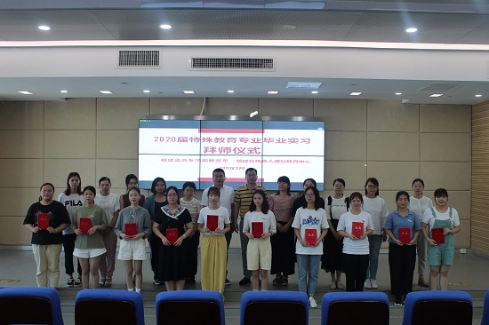 9月6日上午,我系与福建省残疾人康复教育中心举办了学前教育系2020届特殊教育专业毕业实习生拜师仪式。省康复中心谢进生主任、听康部颜晓蓉主任与学前教育系书记王标、特殊教育专业负责人王先达副教授及学前教育系特教专业教师出席拜师仪式,本次活动由省康复中心颜晓蓉主任主持。