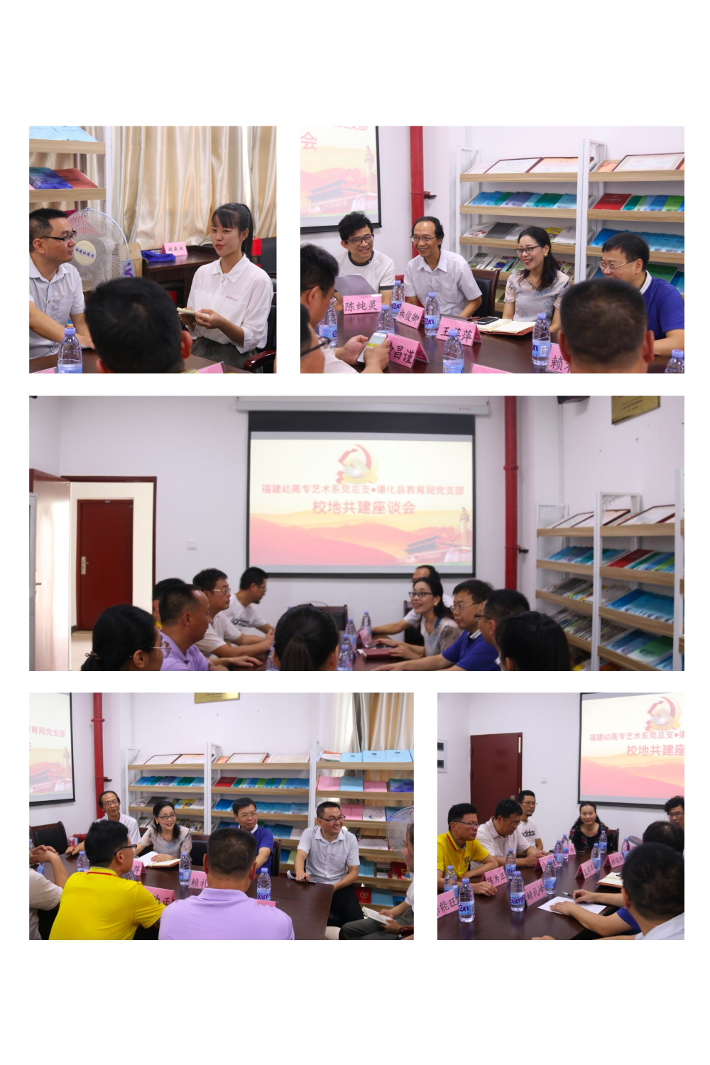 2019年9月12日上午,我系于综合楼五楼美育中心开展"福建幼高专艺术系党总支与德化县教育局党支部校地共建座谈会"。艺术系党总支书记、主任王萍萍教授,系副主任林俊卿副教授,系副主任陈青副教授、系党总支委员、实践教研室主任陈纯灵老师,系团总支书记陈锋华等老师与三下乡实践团队学生代表到场参与了此次与德化县教育局领导的座谈会。