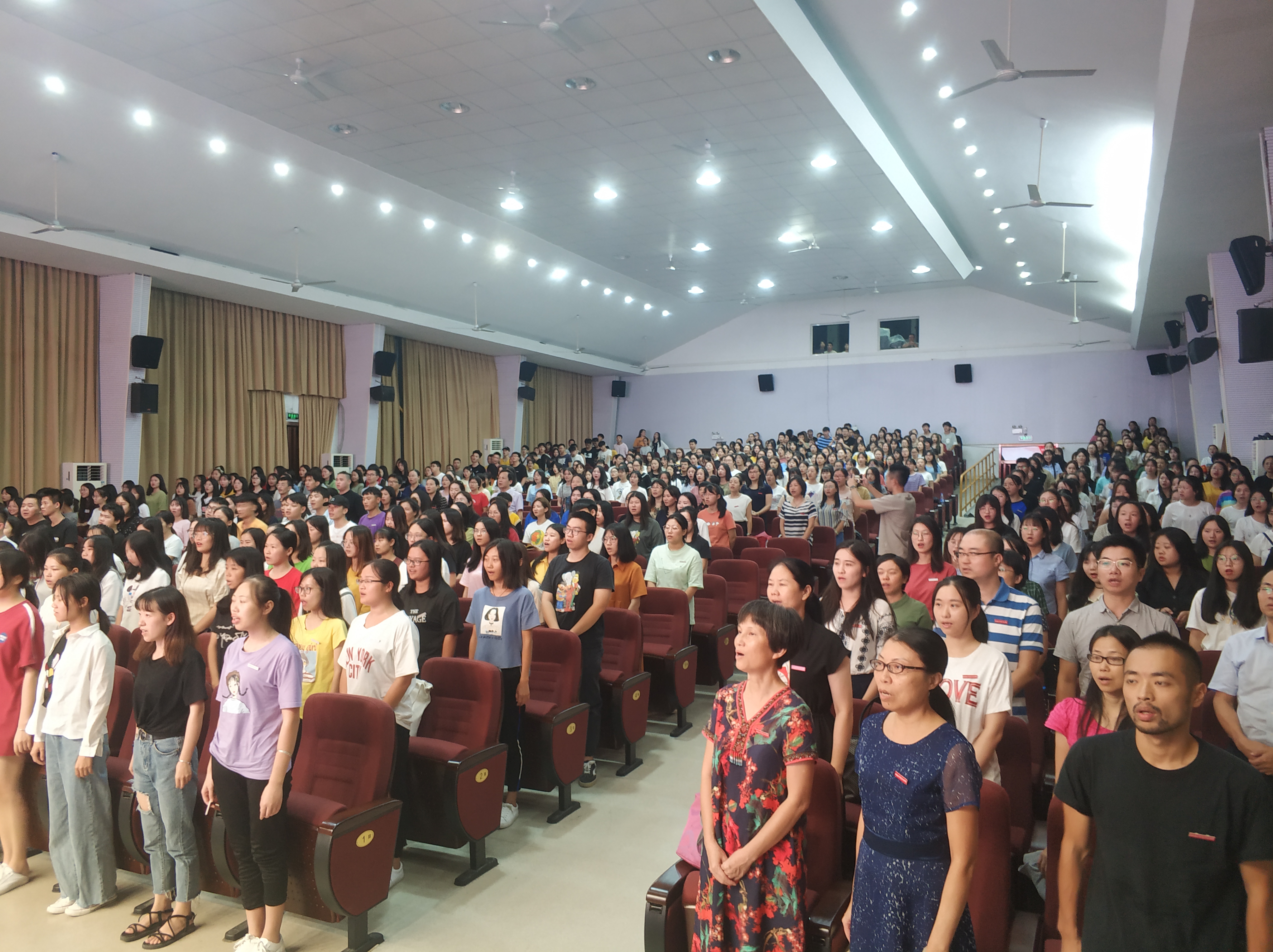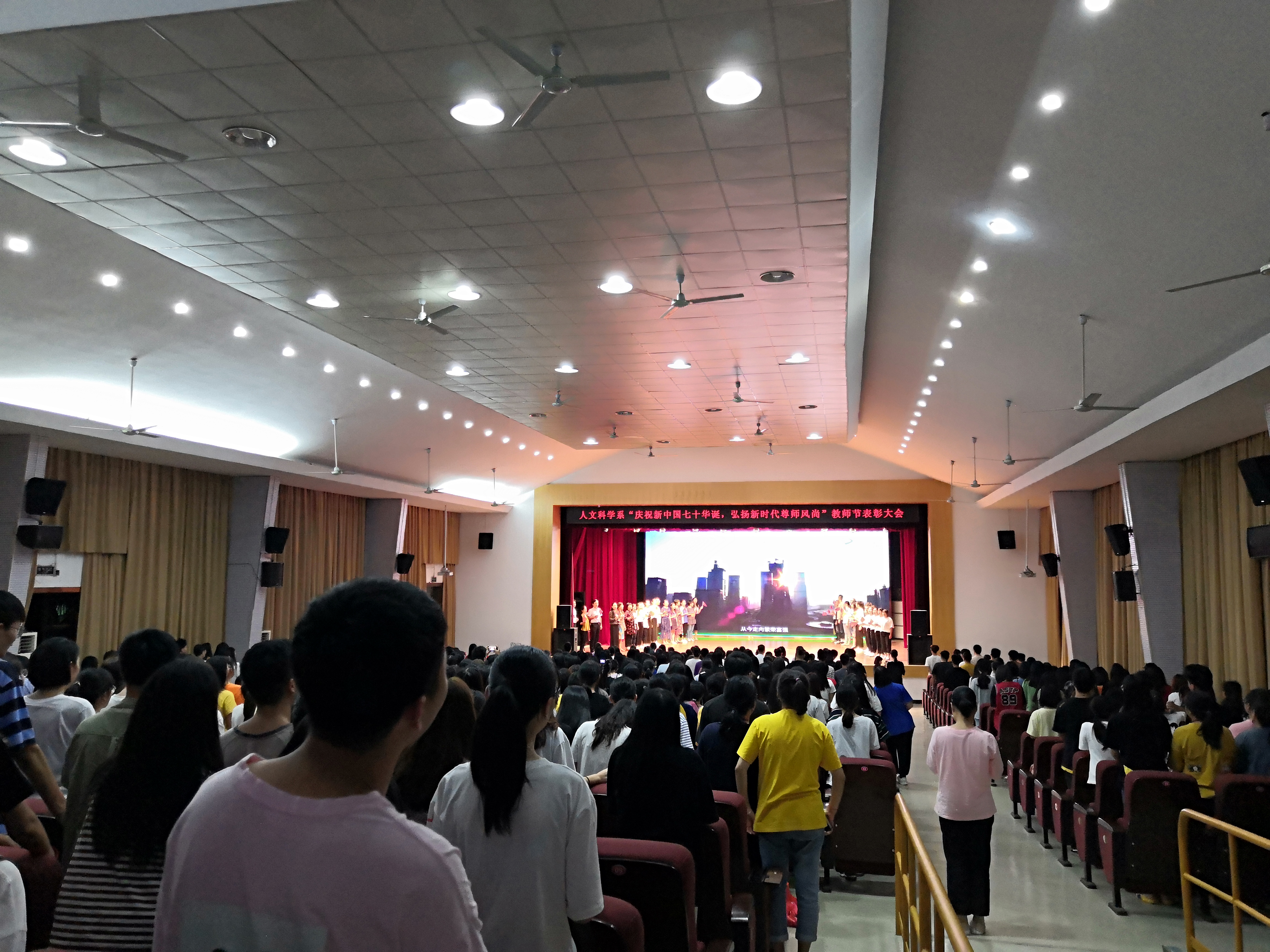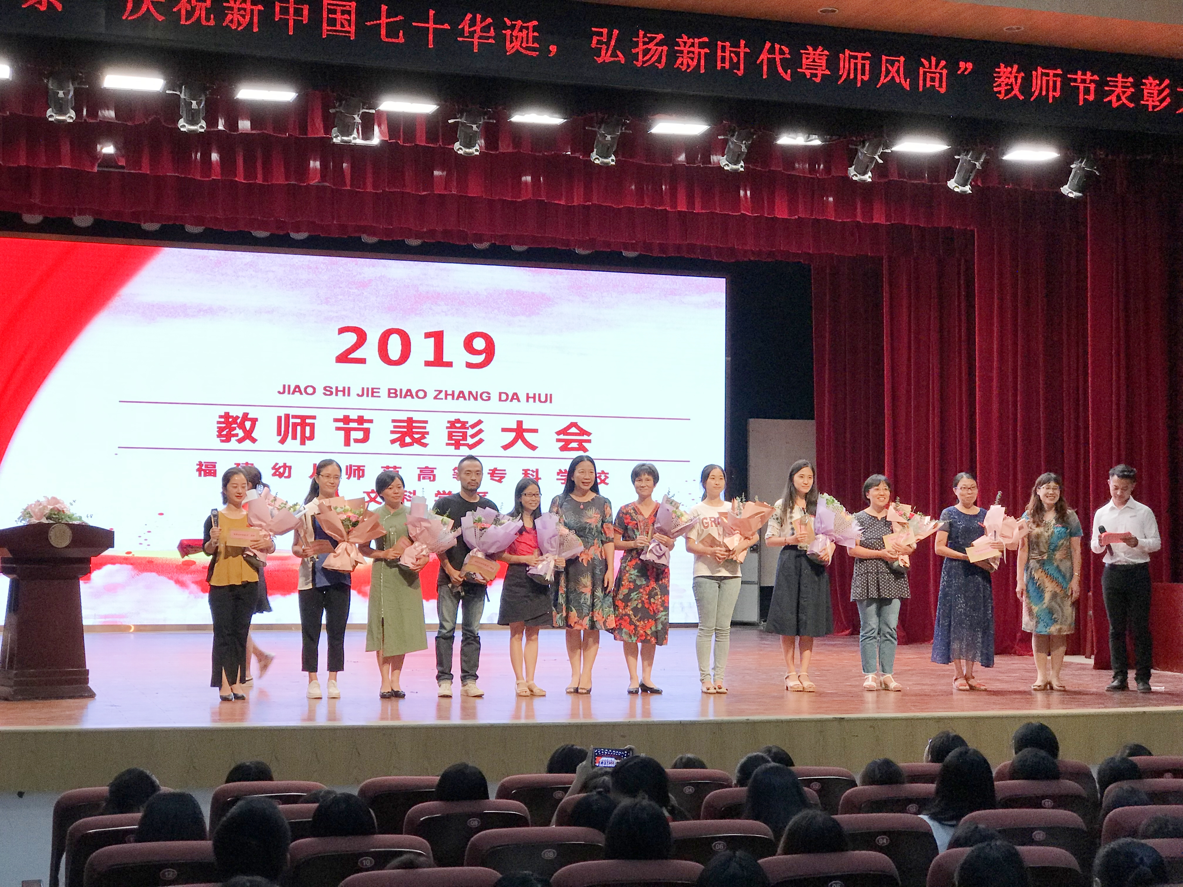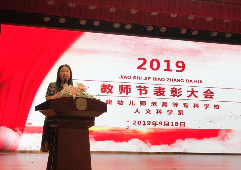 为了弘扬尊师重教、爱岗敬业、教书育人的精神,鼓励我系教师及师范生努力践行习近平总书记提出的"四有"好老师的要求,增强教师的荣誉感和责任感,9月18日晚,人文科学系在仓山校区礼堂隆重举行"庆祝新中国七十华诞,弘扬新时代尊师风尚"教师节表彰大会。校党委委员、副校长郑晓生,校党工部部长黄晖、校人事处处长陈凤玉、校培训中心主任薛少红、校图书馆馆长胥文玲、系党总支书记林琳、系主任姜平、系副主任刘建炜、系副书记周海林、系全体教师以及学生代表等500余人参加了大会。