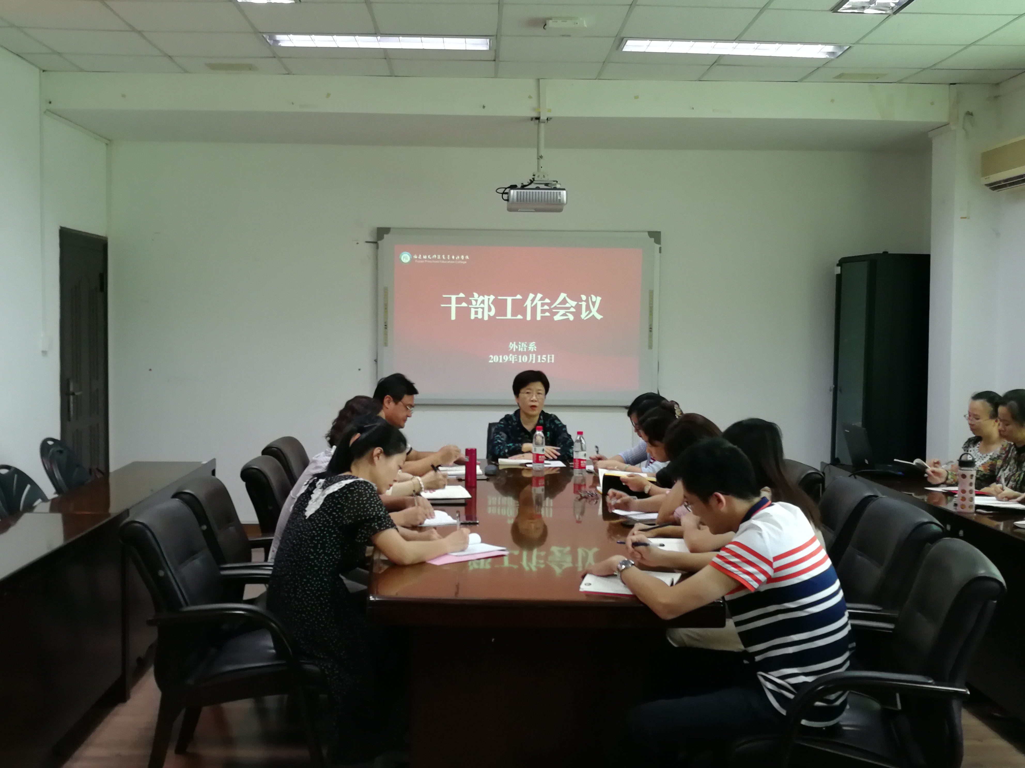 10月15日下午,校党委副书记、校长陈峰教授莅临外语系宣布校党委有关干部任命决定。党工部副部长瞿欢欢同志、外语系班子成员、教研室主任、备课组长、辅导员、秘书等参加会议,党总支书记林祥昊同志主持会议。