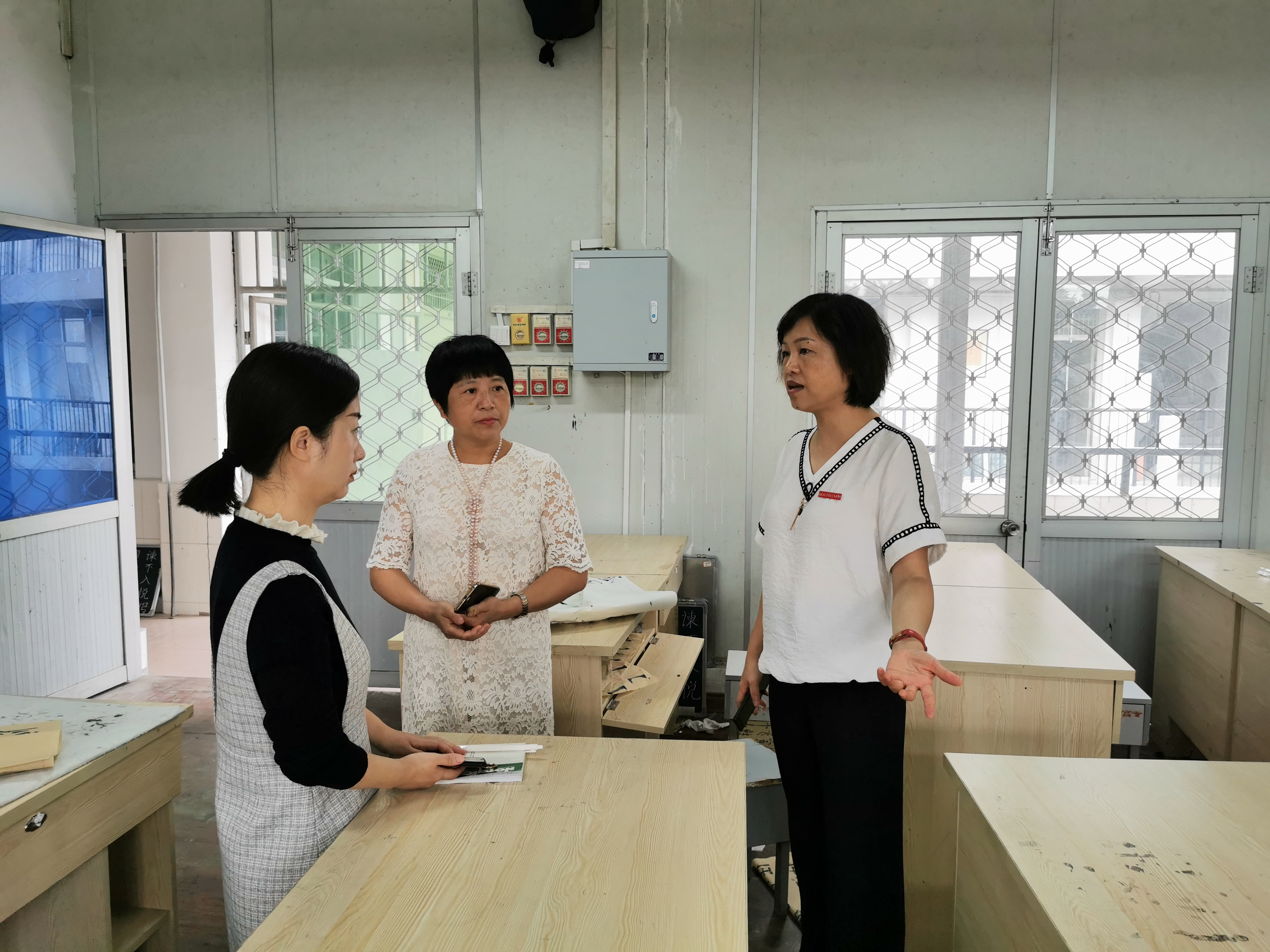 10月14日,人文科学系系主任姜平、系党总支书记林琳、副主任林英带领系秘书、辅导员深入检查教学一线,对2019级新生首课进行检查。系党政领导班子实地走访查看了教室、实训室等教学设备设施的运行准备情况,就教师到位授课情况、学生出勤上课情况进行了交流和研讨,同时还结合各口分工对学生的管理、教学的后勤保障、教师的课程质量等多项工作提出了更高要求。