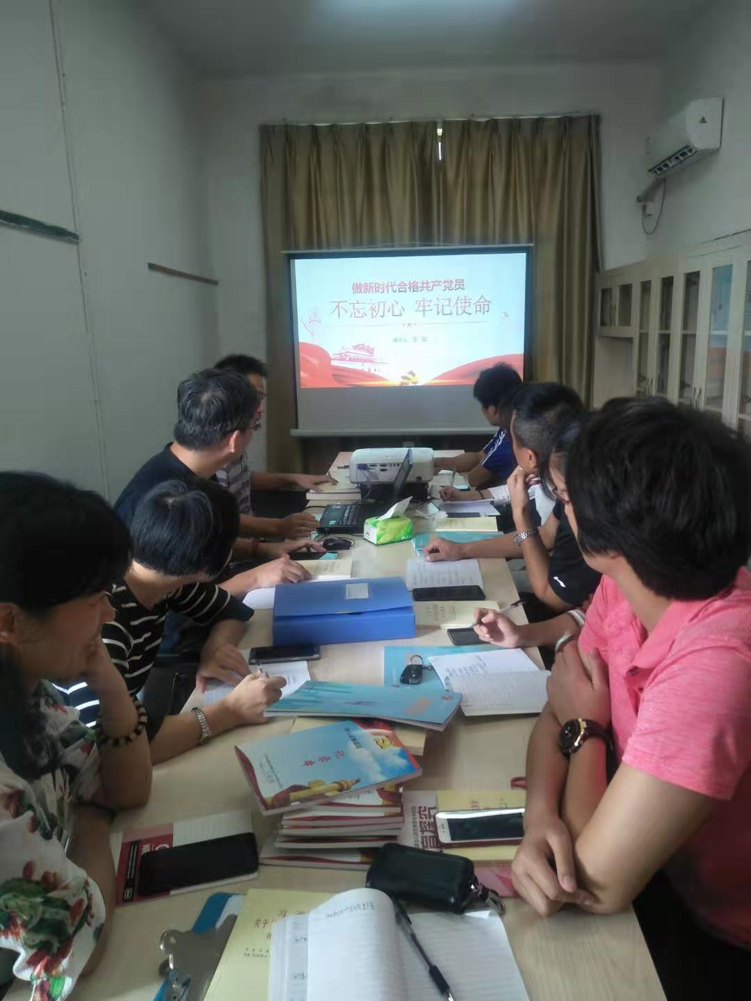 10月18日下午,公共教学部党支部在公共教学部资料室开展"不忘初心、牢记使命"主题教育专题党课活动。公共教学部王奕主任主讲本次专题党课,全体党员教师参加党课学习。