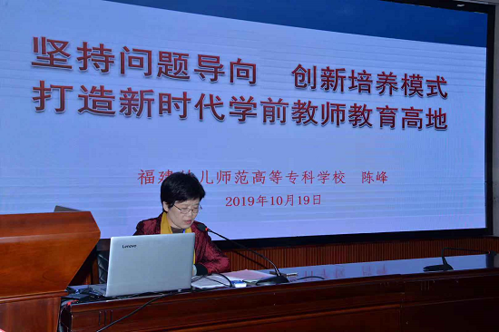 我校陈峰校长作了题为《坚持问题导向 创新培养模式,打造新时代学前教师教育高地》的专题经验发言,全方位介绍了学校富有特色的"整体融合、多元一体、分层进阶、逐级攀升"的幼儿教师教育体系,并就幼儿高专如何在坚持内涵建设的基础上一步步实现学校办学层次提升进行交流。发言得到与会高校代表的充分肯定,并希望未来能全面加强高校间的合作与交流,以更好的拧成一股绳来有效促进全国幼儿高专院校全面发展。