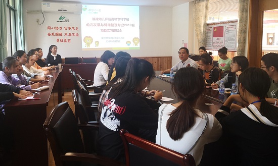 在现场观摩了解学生实习情况之后,我系老师们与融侨旗山幼儿园施琴园长、教研主任、保教主任、各年龄段段长们以及在该园实习的我系2018级健康专业学生一同进行了面对面的座谈活动。首先,叶圣军副教授代表系部对融侨旗山幼儿园大力支持健康专业人才培养工作表示感谢,并说明此次座谈会的目的和意图;接着,施园长热情欢迎我系健康专业学生的到来,并介绍了幼儿园的概况和特色课程;而后,我系老师、幼儿园老师与学生们展开面对面的座谈交流,老师们听取并记录了学生代表对于本次项目实习的困惑和需求,并进行一一解答。最后,幼儿园老师们对我系健康专业的课程设置、学生的实习和就业等核心问题提出了许多宝贵的建议。