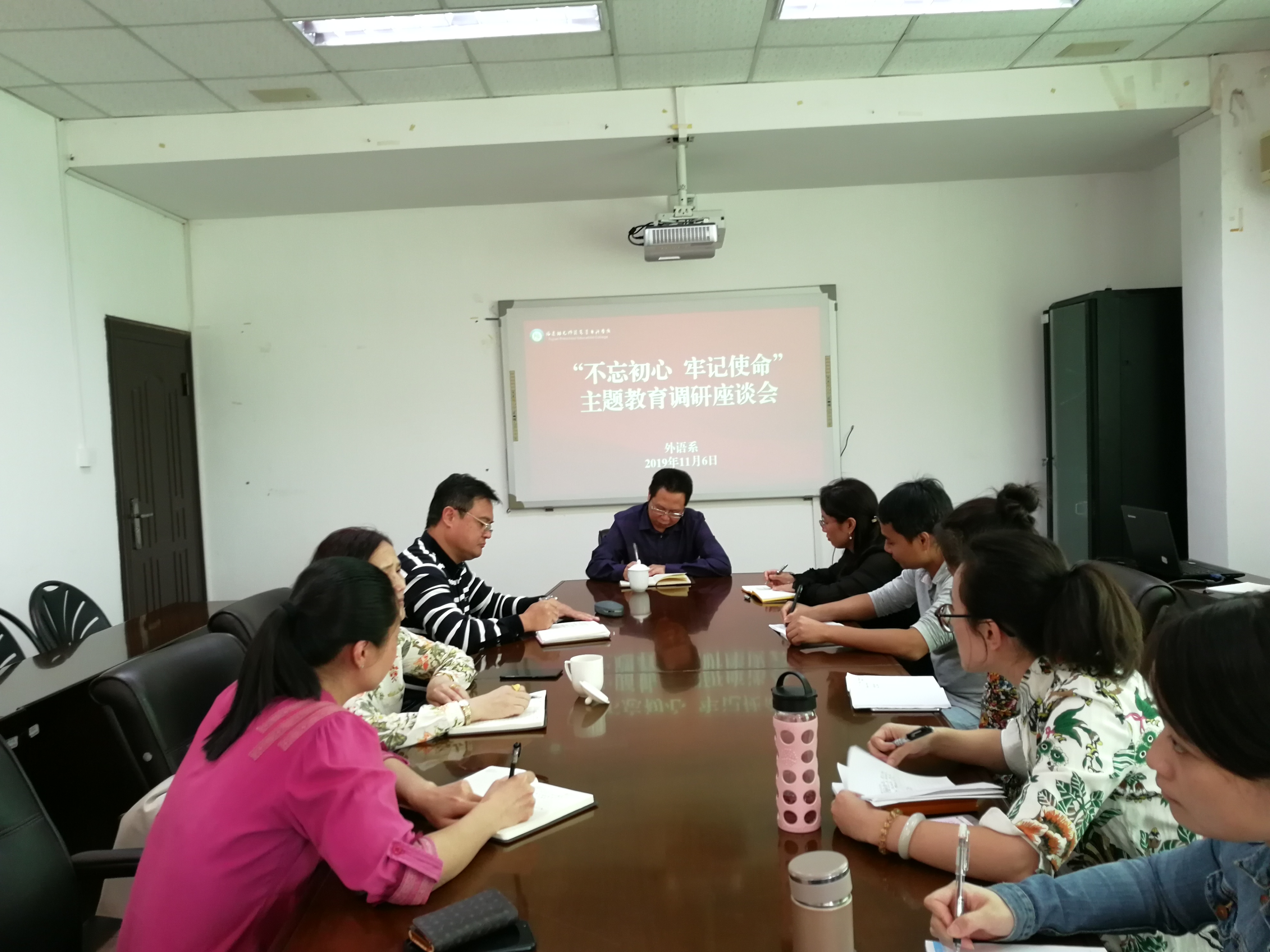 11月6日上午,校党委鲍仕梅书记到金山校区外语系开展"不忘初心 牢记使命"主题教育调研,鲍书记与外语系党政班子及教师代表座谈,听取教师代表的意见和建议;深入学生食堂,与学生面对面交流,听取学生对后勤服务的意见和需求。