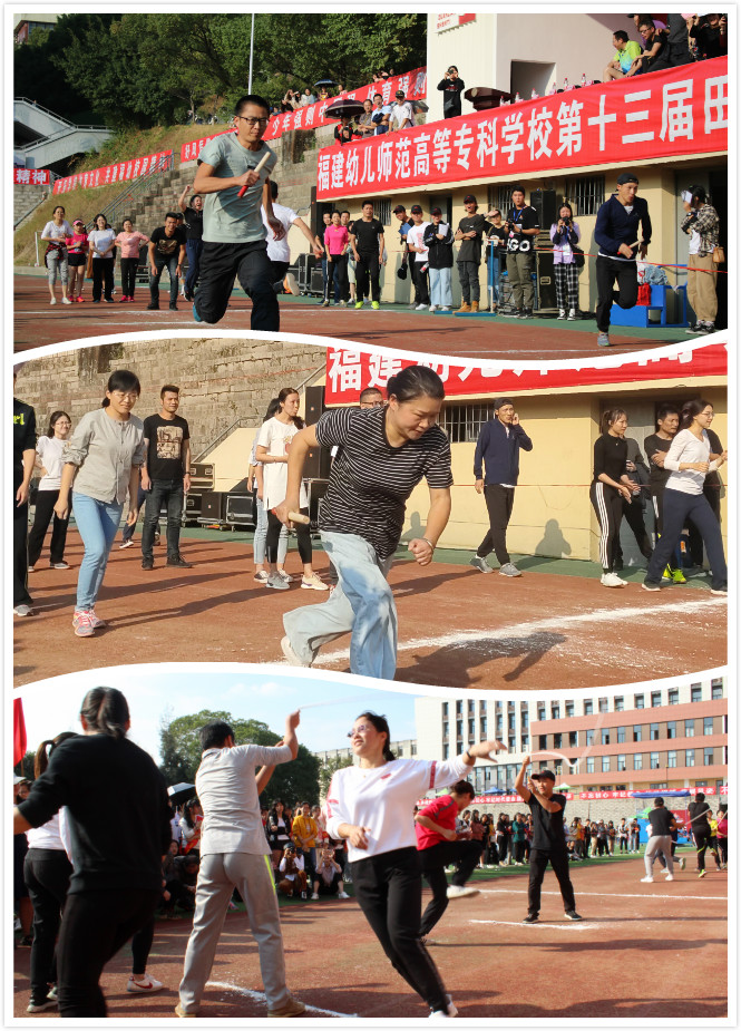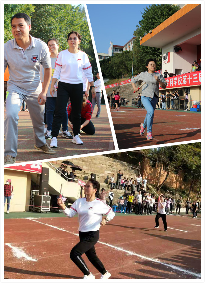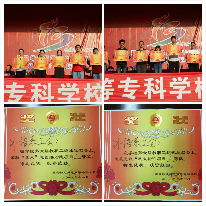 11月8日下午,学校工会组织开展第六届校教职工趣味运动会,此次比赛设置"30米迎面接力""袋鼠跳""8字绕跳绳""无敌风火轮"4个集体项目。外语系22名教师组成4支队伍分别参加4个项目。外语系教师本着"友谊第一、比赛第二、重在参与,强健体魄"的精神,全身心投入比赛,体验体育竞技带来的刺激和快乐。此次比赛外语系工会共获得"30米迎面接力"二等奖、"无敌风火轮"三等奖两个奖项。