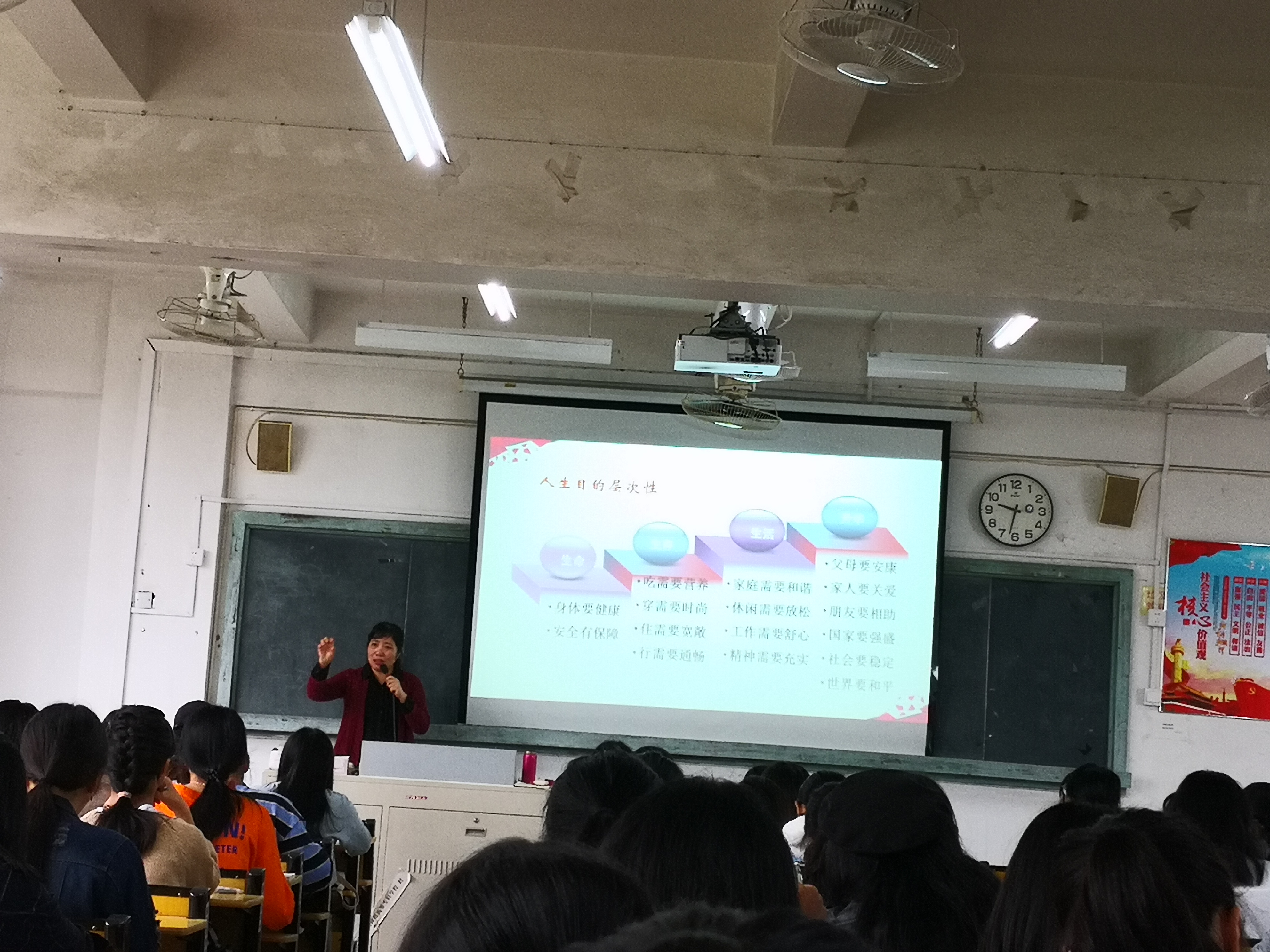 2019年11月18日上午第2节,马克思主义学院教师郑丽萍在教学楼A505开设题为《树立正确的人生目的》的思政课教学公开课,马院没课的老师均前往观摩学习。