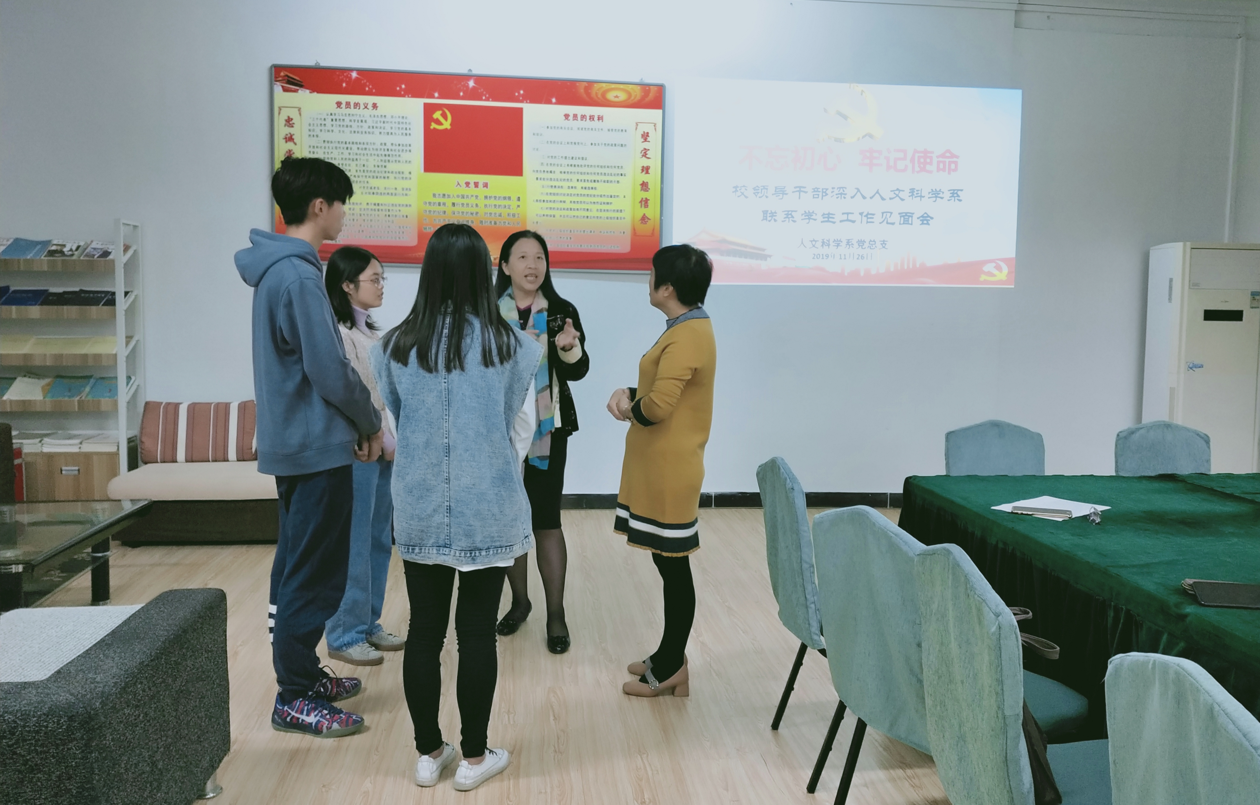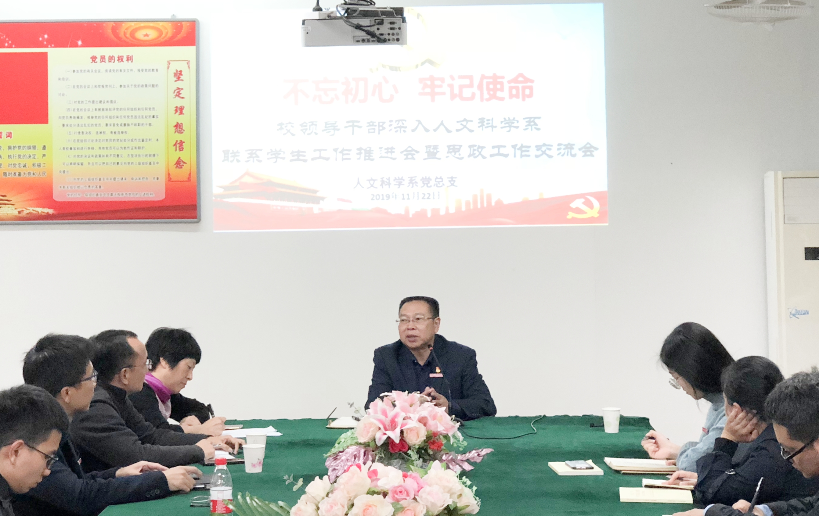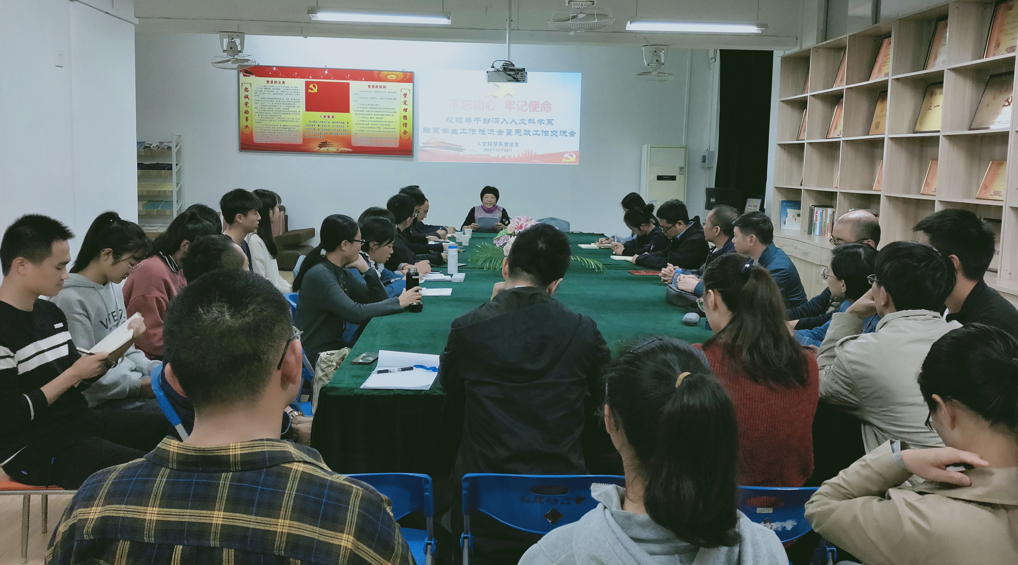 11月22日,人文科学系召开"校领导干部深入基层联系学生工作推进会暨思想政治工作交流会"。校党委鲍仕梅书记,校工会常务副主席、现代教育技术中心主任陈宁华,现代教育技术中心副主任刘建炜及我系全体辅导员、班主任、联系班级学生代表参加了会议。会议由系党总支林琳书记主持。