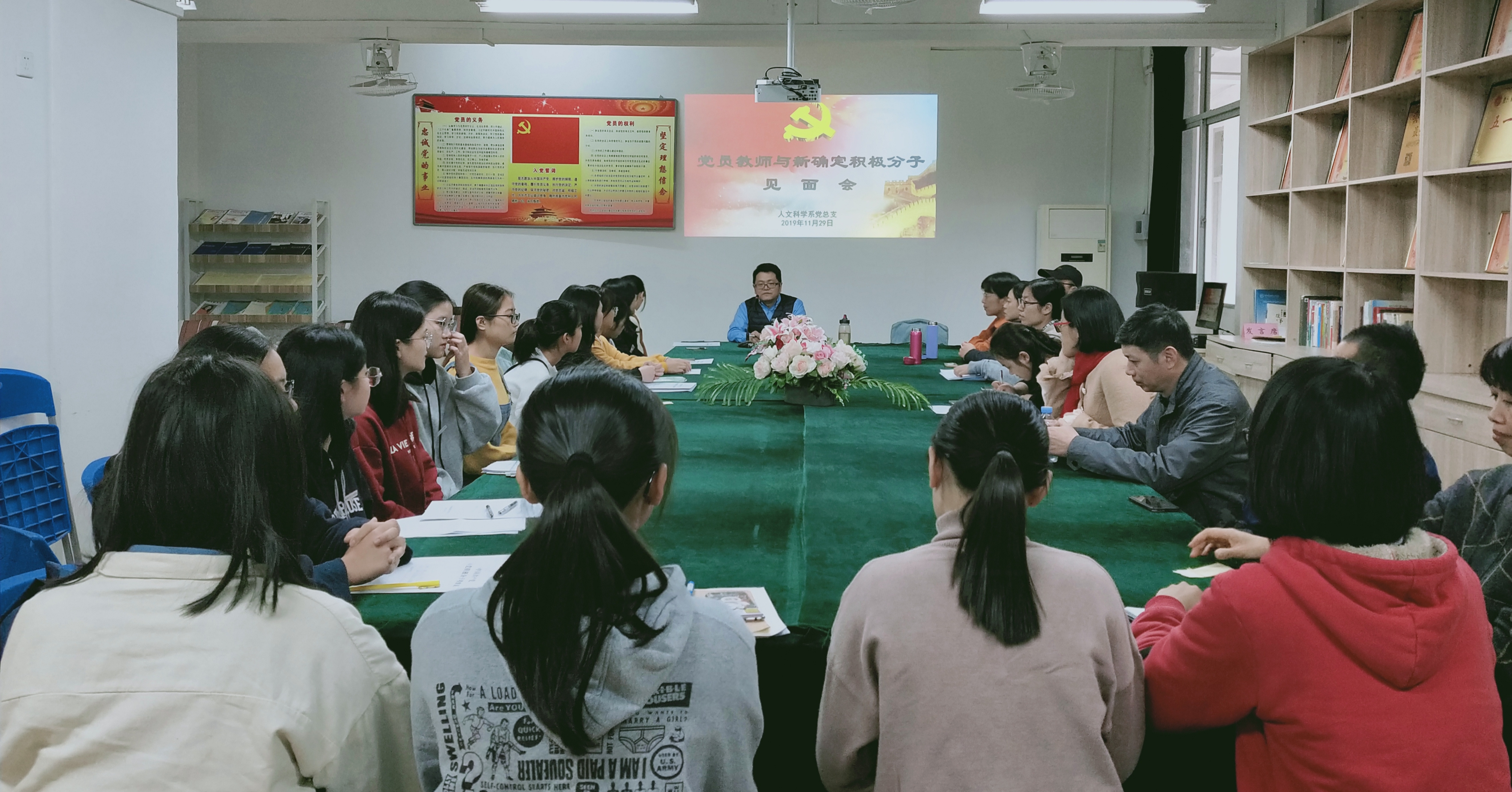 11月29日下午,人文科学系学生第一党支部召开入党积极分子与培养联系人见面会。本学期新确定的14名入党积极分子及其培养联系老师参会,会议由学生一支部书记林承杰老师主持。