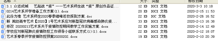 党务工作从来就是最需要随时运作的,尤其是疫情管控的当下,从严治党更是紧跟而上。艺术系党总支2019年度党的建设和思想政治工作自评自测、系党总支2019年度各支部星级评定情况、省巡视十二组整改要求对 "三会一课"制度落实情况......一项项都不能懈怠,我系党务秘书王瑾老师在家中收集汇总各项材料,并返校整理系部各项检查资料。