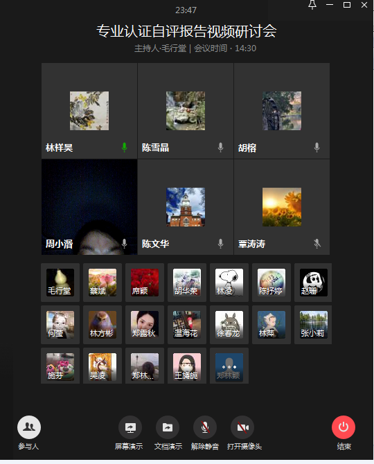 2020年4月19日14:30-17:30,我系召开了英语教育专业认证自评报告视频研讨会。会议由陈文华副主任主持,林祥昊书记和胡华荣副书记及承担专业认证任务的教师、辅导员和系部秘书共同参加了会议。会上,各模块负责教师就材料准备情况及存在的问题进行了细致的分析探讨。林祥昊书记和陈文华副主任充分肯定了教师们前期所做的工作,要求大家要继续克服疫情带来的困难,把握住时间节点,认真研读认证标准,保质保量地完成专业认证准备工作。