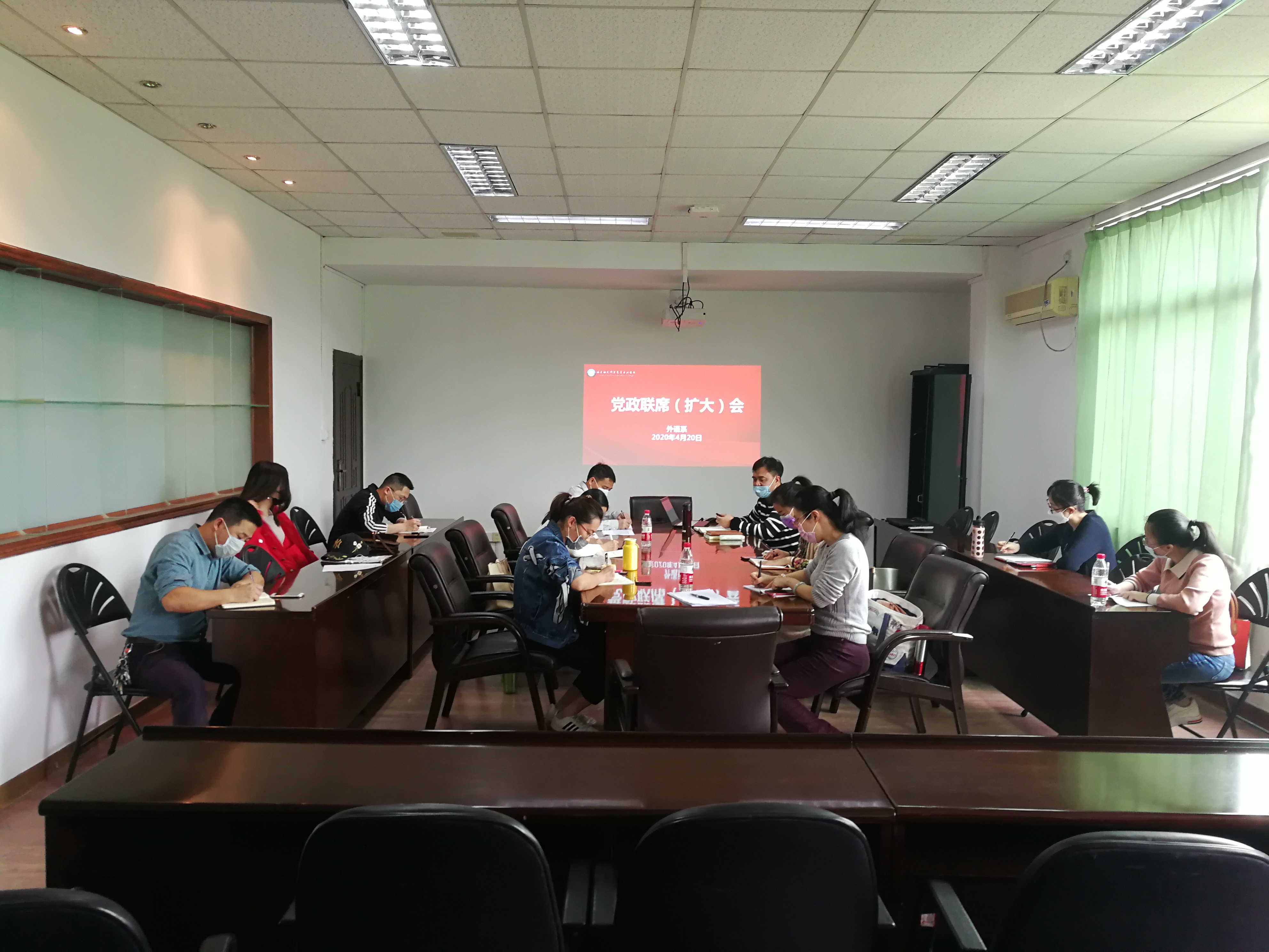 4月20日下午,外语系在金山校区召开党政联席会议,班子成员出席会议,教研室主任、辅导员、秘书列席会议。会议由党总支书记林祥昊同志主持。