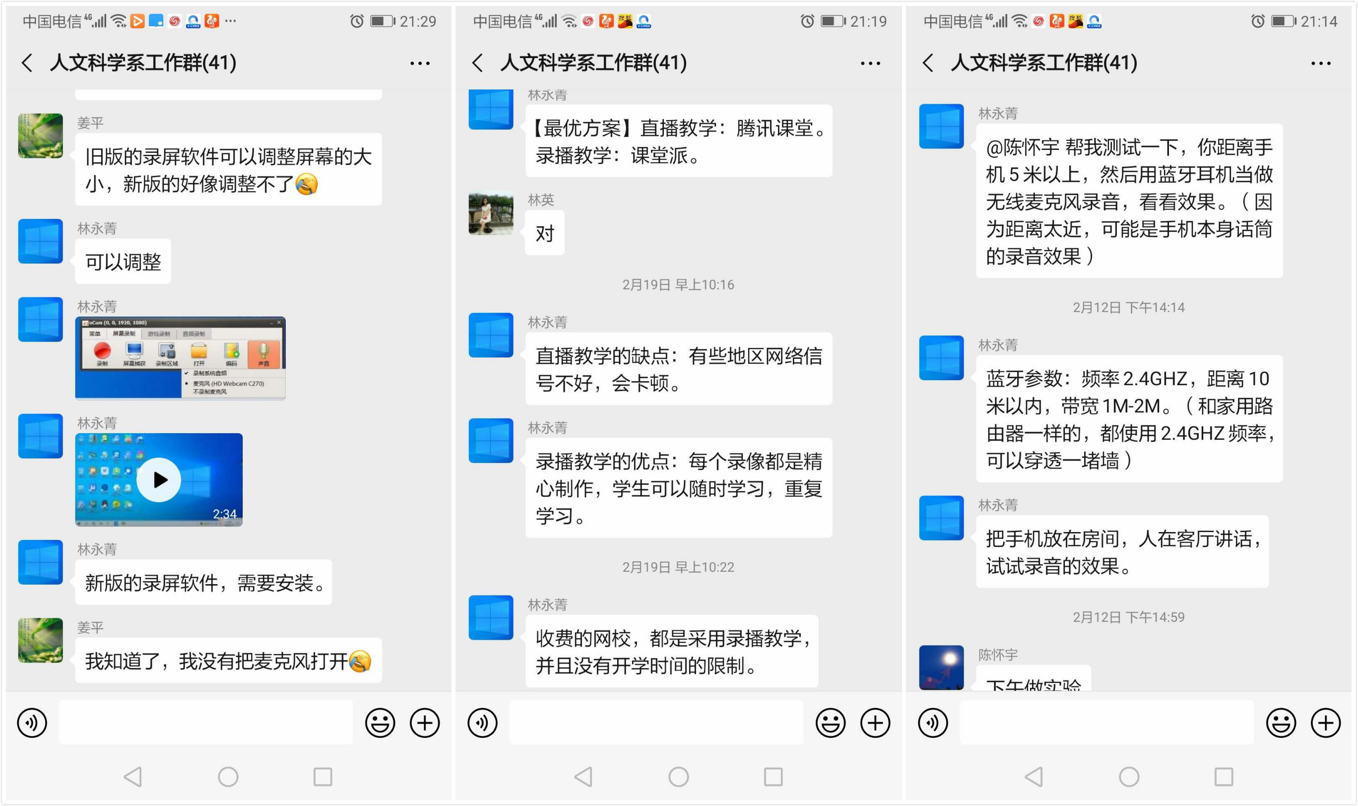 林永菁、陈怀宇老师提供线上教学技术咨询服务