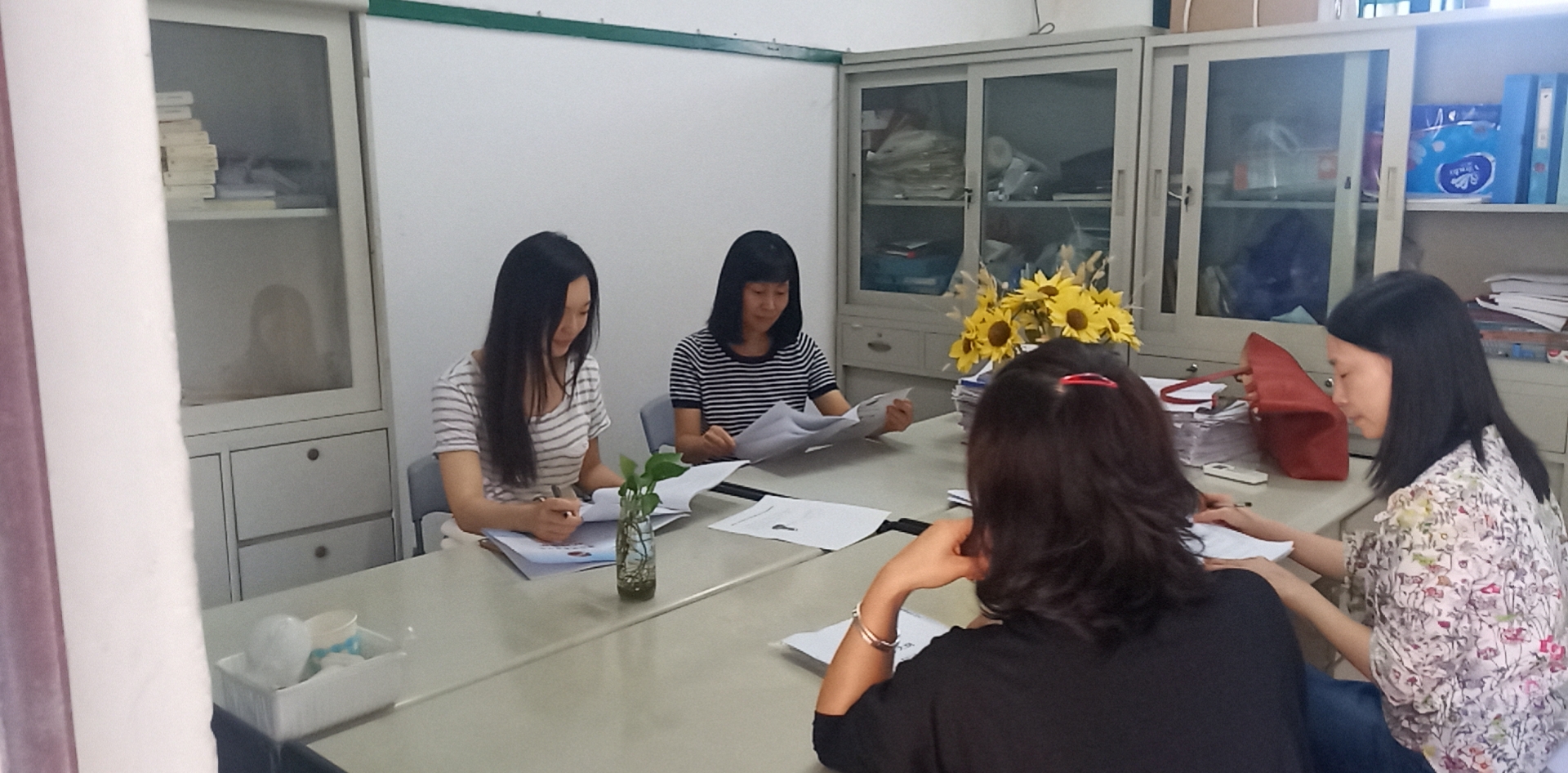为进一步落实推进我校师范专业认证工作,2020年9月16日,口语教研室组织全体教师于系办509办公室召开师范专业认证研讨会。会上,教研室主任陈朝霞老师带领全体教师重点学习师范专业认证学习手册和自评报告,要求全体老师高度重视此次师范专业认证工作,对相关内容应知应会,并在教育教学中始终贯彻学生中心理念,为学生发展服务。全组教师并就《教师口语》课程的教学大纲以及课程目标达成情况评价报告进行研讨,围绕教学目标、教学过程、教学方法如何体现"学生中心、产出导向、持续改进"的基本理念和学前教育专业毕业要求指标点展开深入探讨,力求在原有的课程框架体系基础上进一步完善课程的架构。