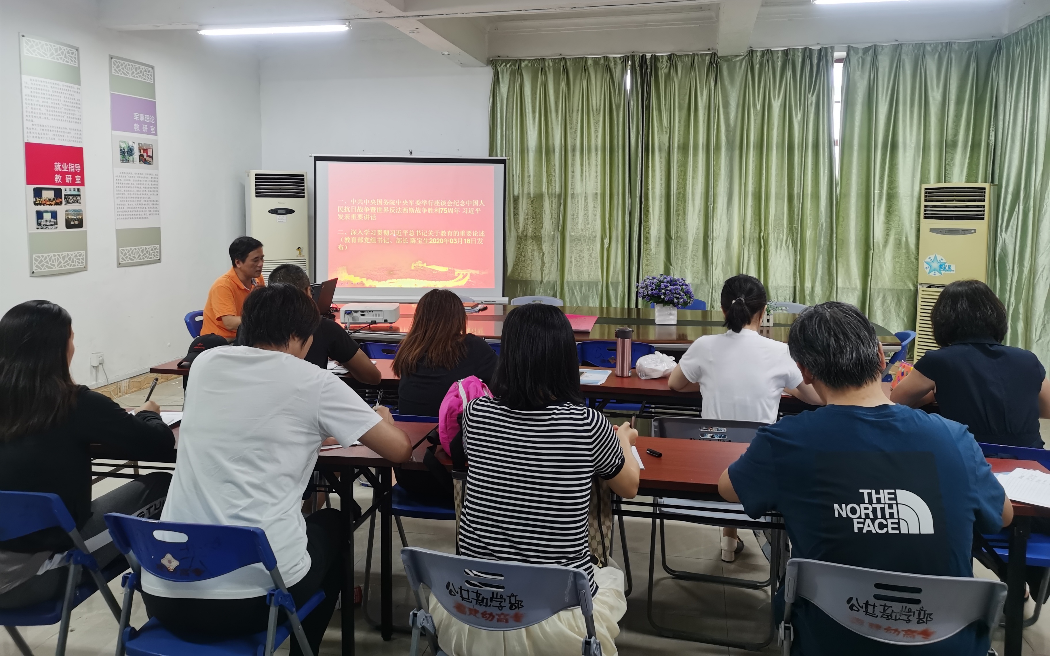 2020年9月16日下午,公共教学部党支部在系部教研楼506会议室召开全体党员政治理论学习会议,会议由陈福榕书记主持。