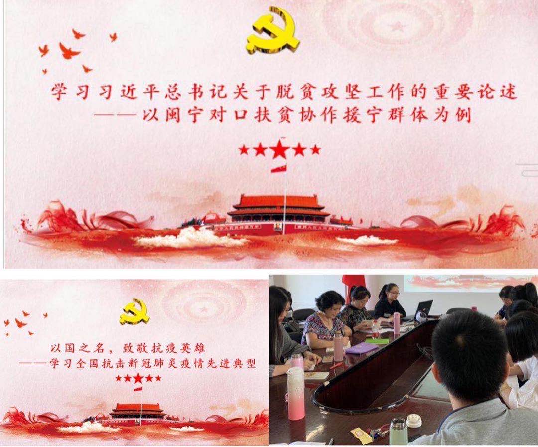 2020年9月30日下午,马克思主义学院组织全体党员教师于系办601会议室学习"时代楷模"闽宁对口扶贫协作援宁群体暨全国抗击新冠肺炎疫情先进典型,我院党员教师胡新蕾老师担任主讲。