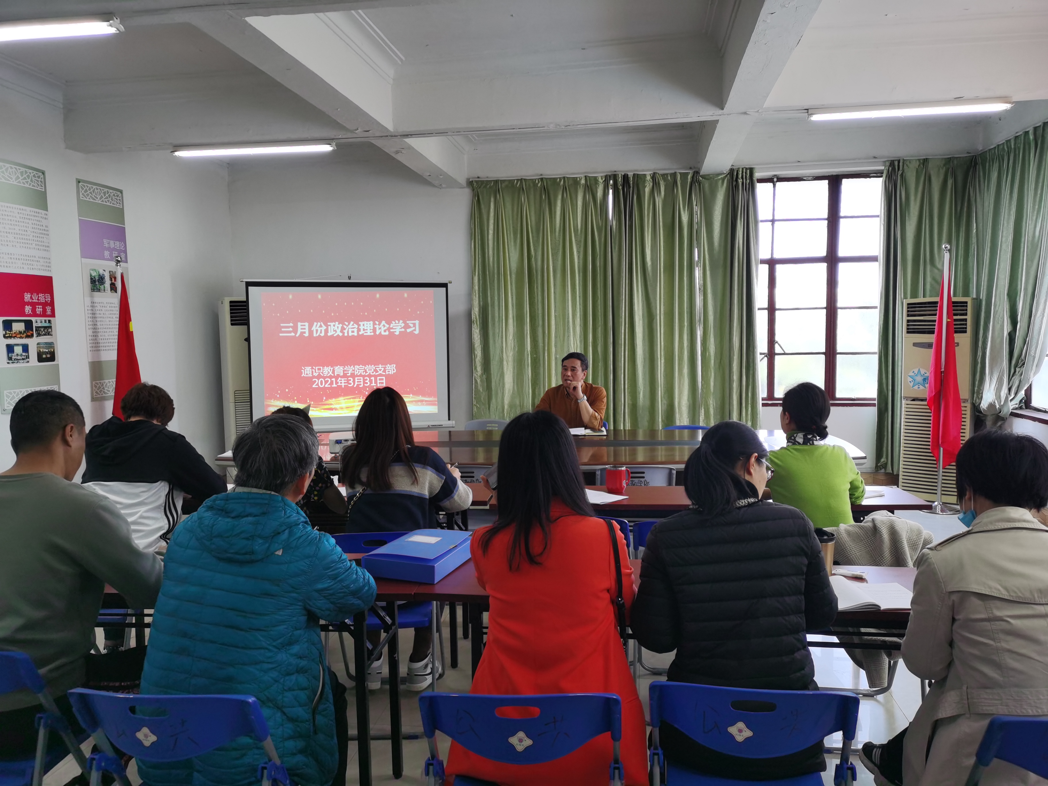 3月31日下午,通识教育学院党支部在系部教研楼506室开展3月份政治理论集中学习活动。学院全体党员参加了此次政治理论学习,陈福榕书记主持了本次学习活动。