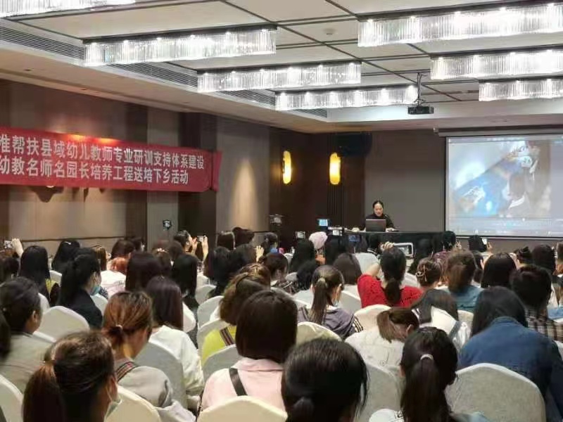 在精准诊断后,培训分园长、教师两个专场同步进行,分别围绕幼儿园发展规划、幼儿园保教建设与管理、幼儿园保教理论与实践、幼儿园生活、游戏与教学活动组织等方面,开展了专题讲座、公开教育活动观摩、案例分享交流等形式在内的多样研训,充分发挥帮扶指导、示范辐射作用,活跃区域幼教教研氛围,实现培养与研究成果共享。