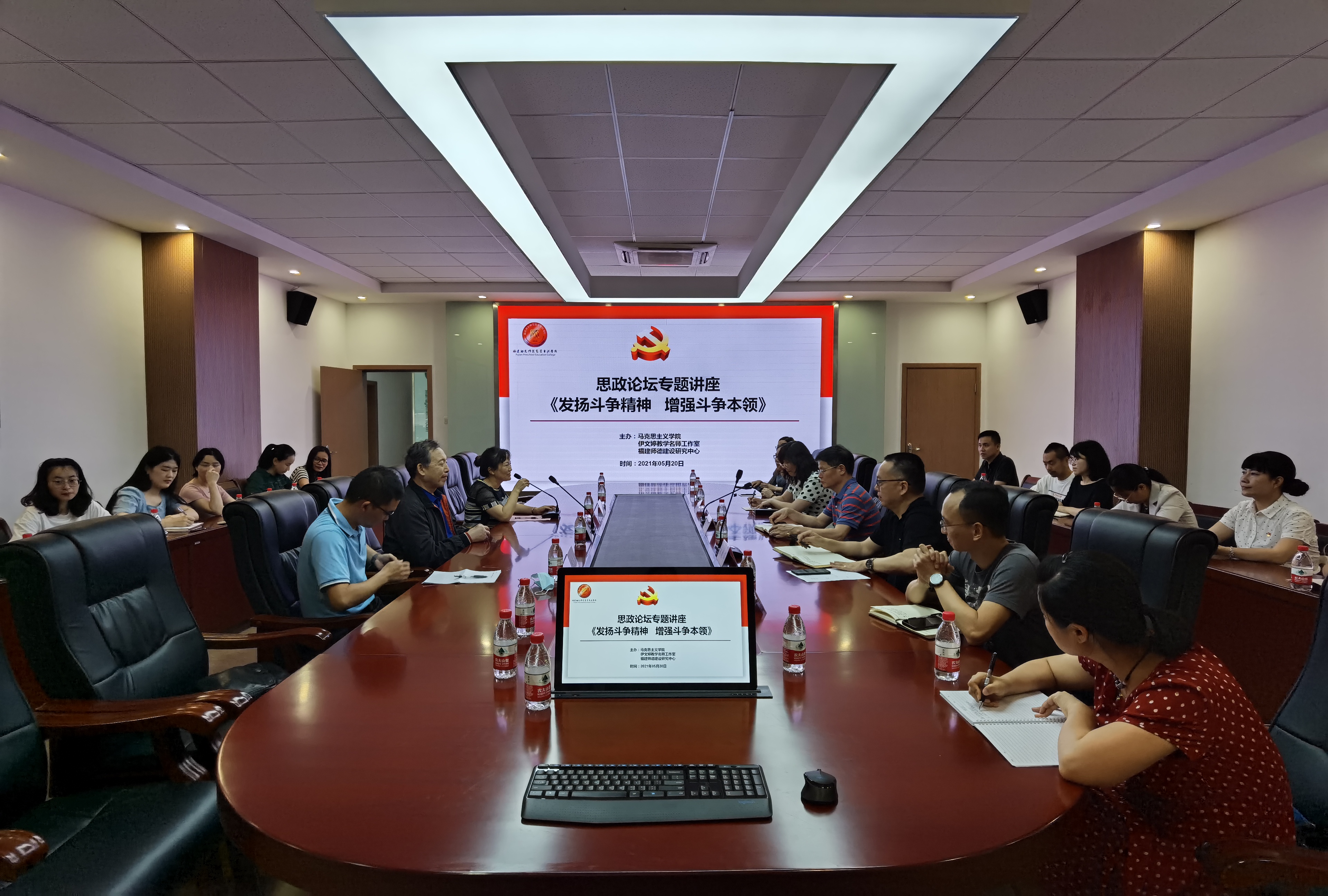 2021年5月20日,马克思主义学院开展党史学习教育党日活动,本次活动邀请了中国社会科学院博士生导师赵智奎教授作客思政论坛,作题为《发扬斗争精神 增强斗争本领》的专题报告。校党委副书记邹雄伟、校纪委书记、校纪委全体干部、各党支部纪检委员以及马克思主义学院全体教师参加。