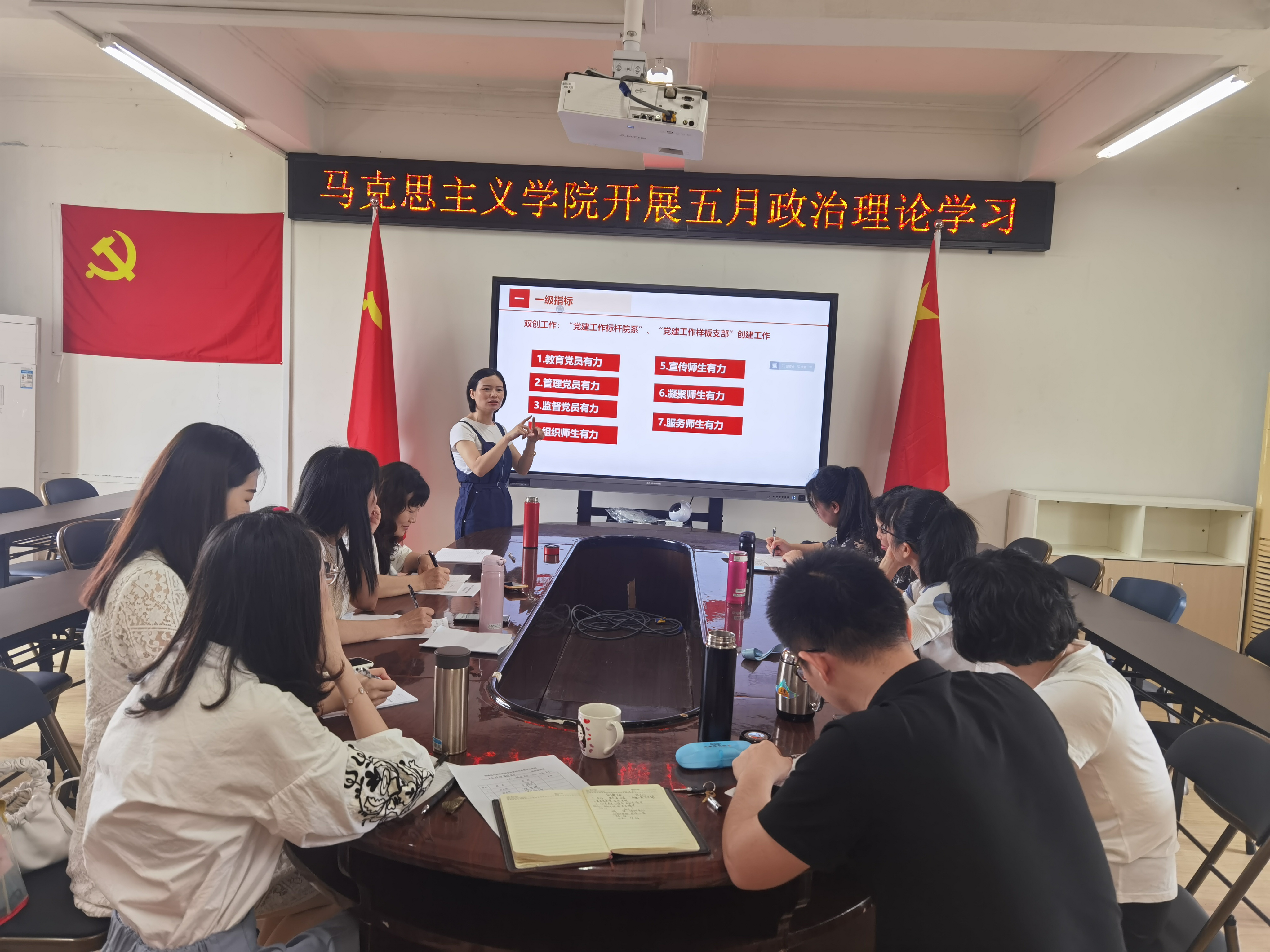 2021年5月31日,马克思主义学院组织全体党员教师于院办601会议室开展"学习·诊断·建设"行动之2021年5月专题学习。此次学习由党员教师张丹凤担任主讲。