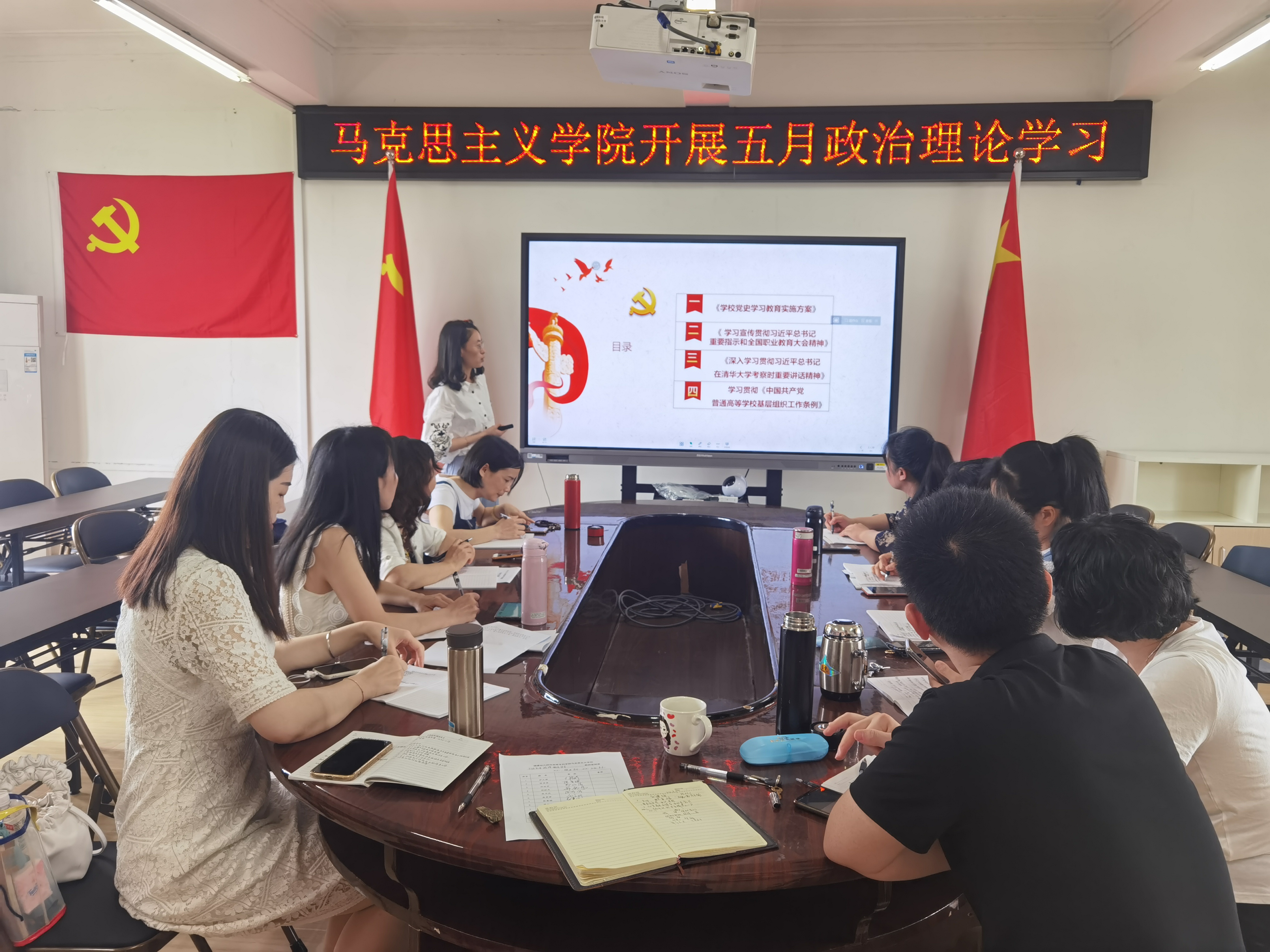 2021年5月31日下午,马克思主义学院组织全体党员教师于院系601会议室开展5月份政治理论学习,党员教师李缀担任主讲。