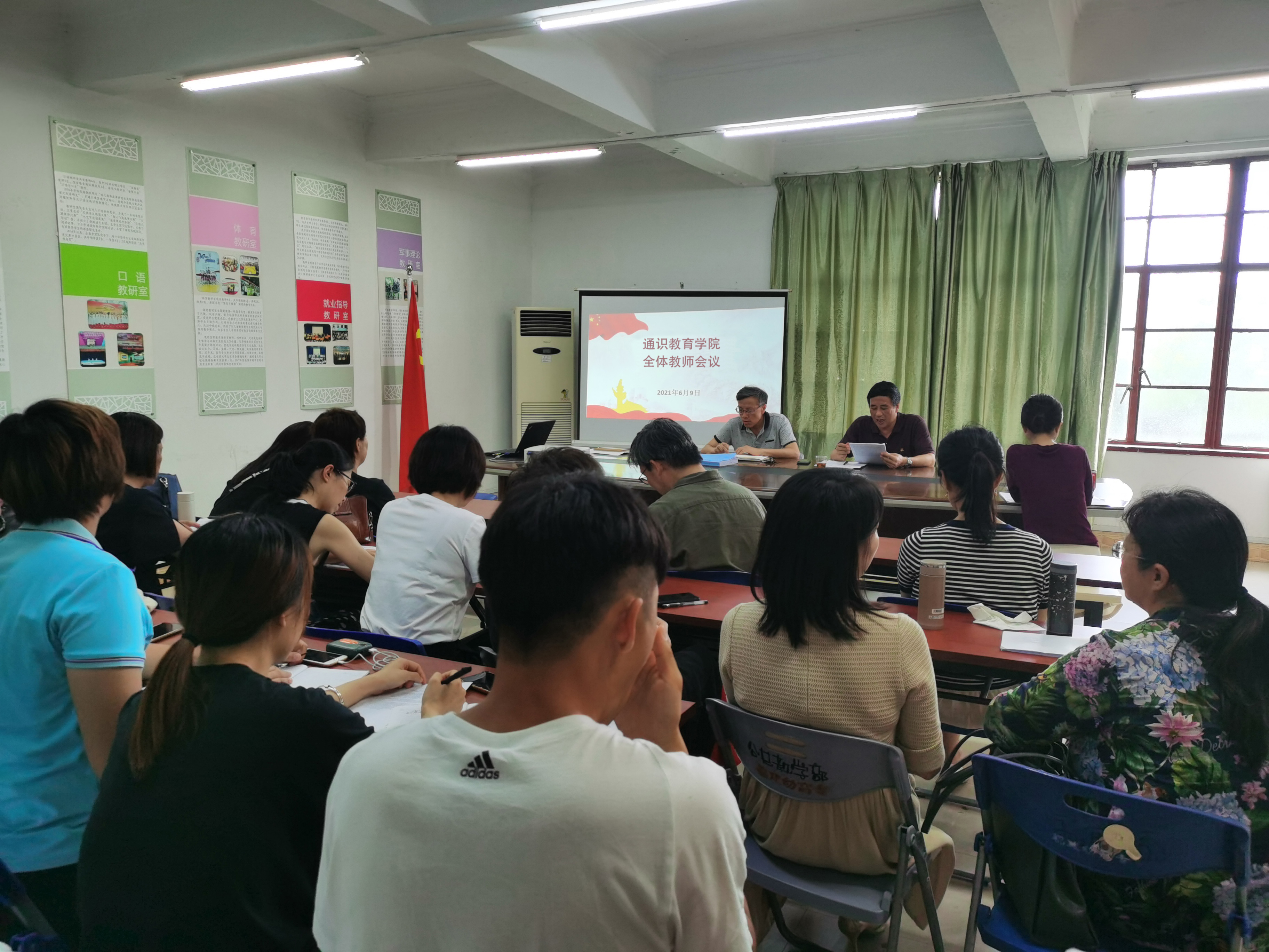 为了对本学期的各项工作加以总结分析,做好期末工作任务,推进下学期各项工作地有序进行,2021年6月9日,通识教育学院召开全体教师会议,提前安排部署期末工作。会议由陈福榕院长主持,全体教师参加会议。
