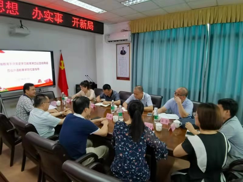 6同16日上午,省教育系统党史学习教育第四巡回指导组在校党委邹雄伟副书记、党委宣传部黄晖部长陪同下莅临外语教育学院检查指导工作。