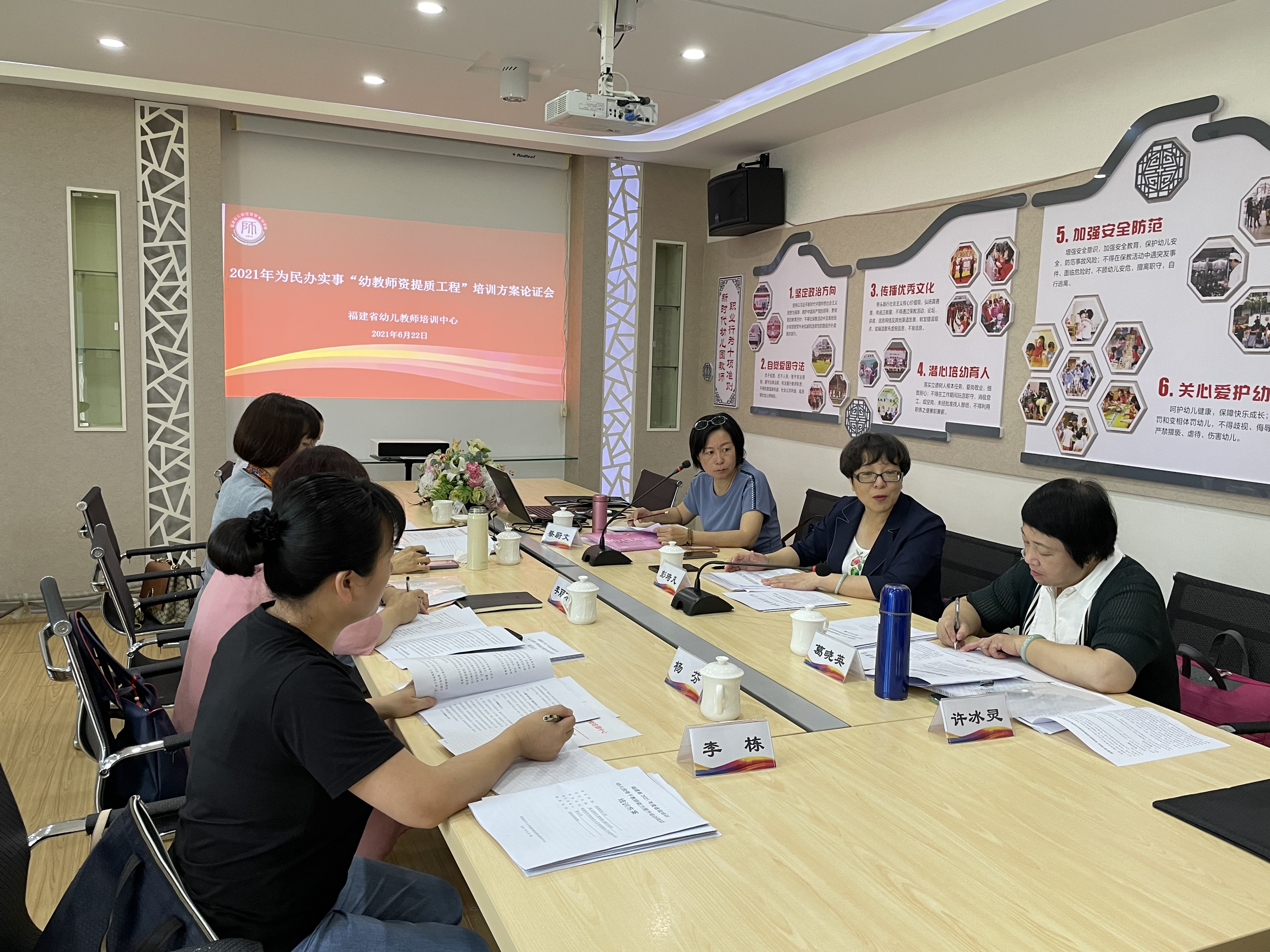 6月22日上午,2021年福建省为民办实事"幼教师资提质工程"示范性项目培训方案论证会在我校附属第二幼儿园举行,福建省幼儿教师培训中心主任彭琦凡教授、我校教师教育发展学院许冰灵副院长以及来自全省的6位幼教专家参加了本次会议。