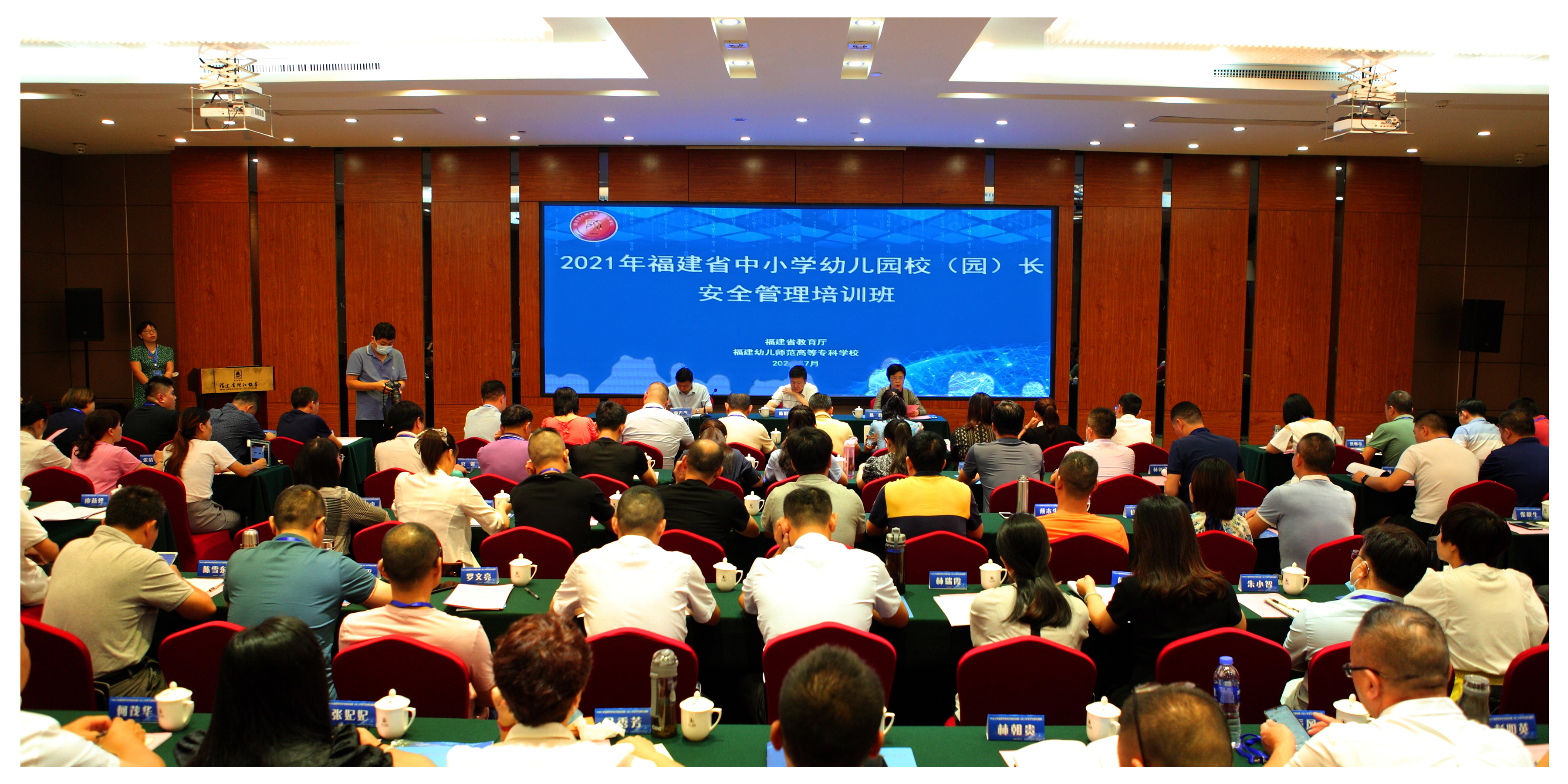 为深入学习贯彻习近平总书记关于安全生产重要论述和来闽考察重要讲话精神,牢固树立安全发展理念,强化安全大局意识、危机意识、责任意识,7月14日-16日,由福建省教育厅主办、福建幼儿师范高等专科学校承办的"2021年福建省中小学幼儿园校园长安全管理培训班"顺利在榕举办,101名来自全省中小学、幼儿园分管安全工作的校园长参加了本次培训,福建省教育厅副厅长陈明庆、福建幼儿师范高等专科学校校长陈峰、福建省教育厅学校安全工作处处长林素川等领导出席了开班仪式。