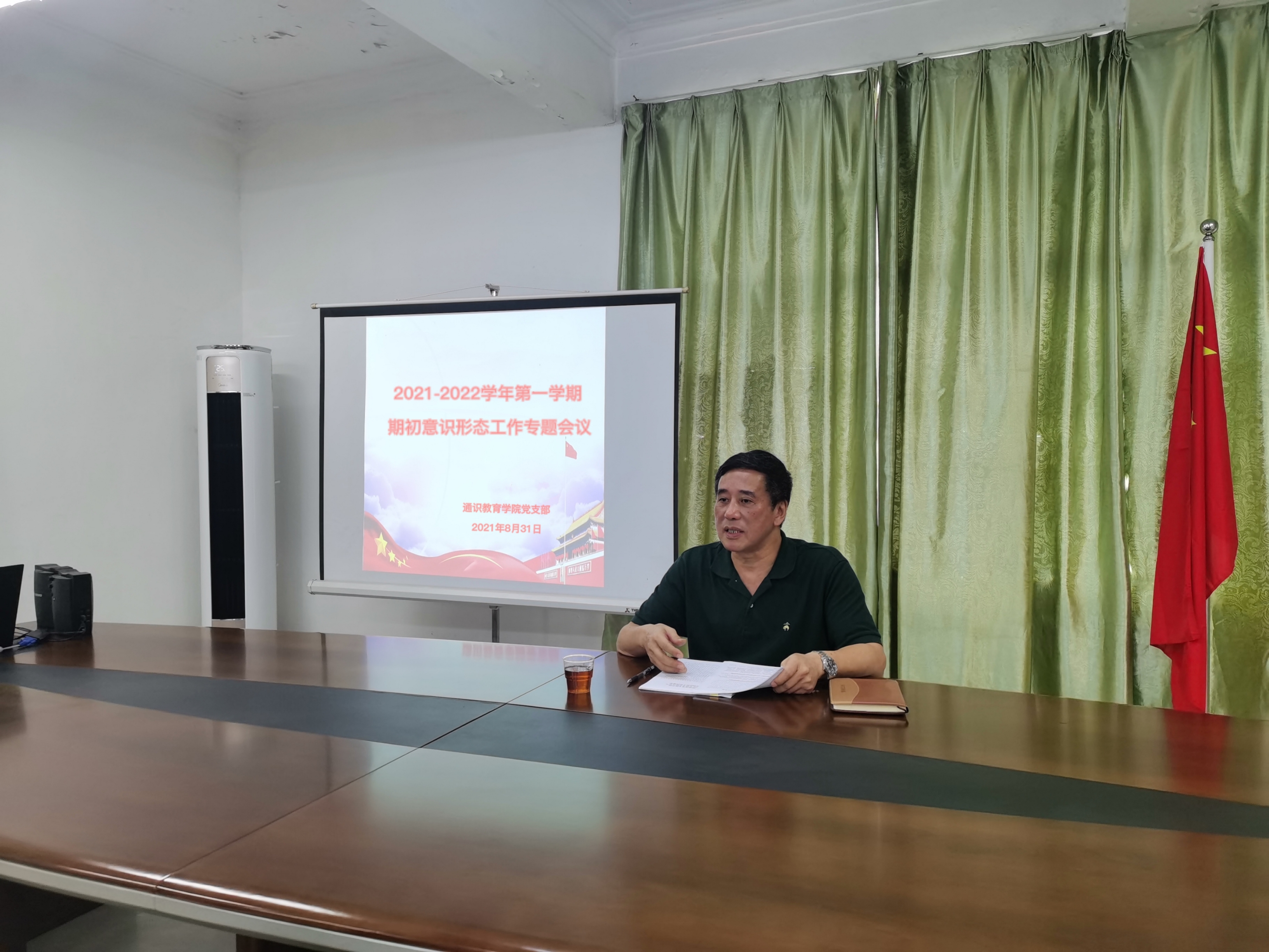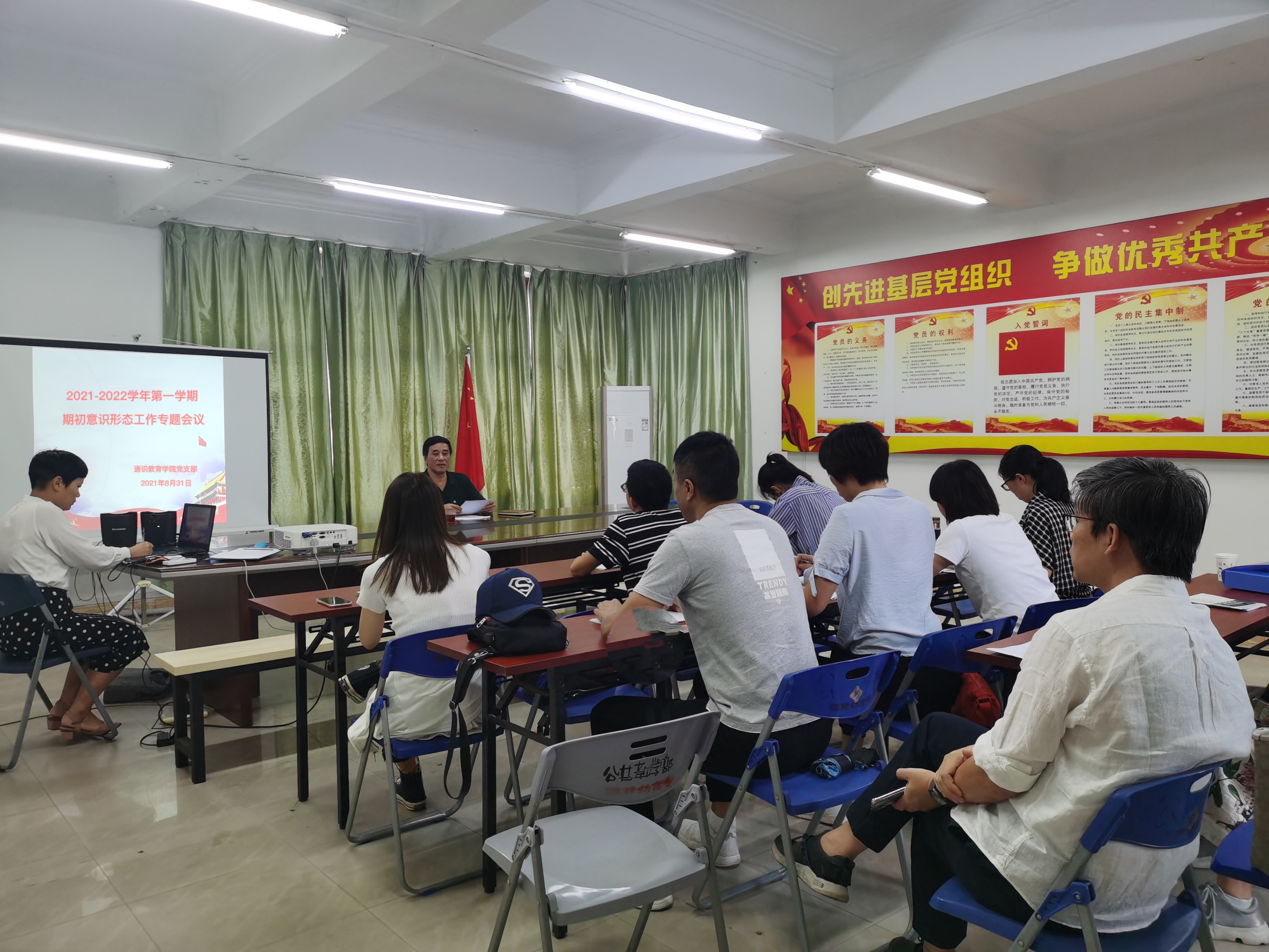2021年8月31日,通识教育学院党支部在系部教研楼506室召开2021-2022学年第一学期"期初意识形态工作专题会议",陈福榕书记主持会议。陈福榕书记首先带领全体党员学习了《习近平谈治国理政》第三卷和习近平总书记关于意识形态工作重要论述。陈福榕书记指出,全体党员要将认真学习《习近平谈治国理政》第三卷与贯彻落实习近平总书记来闽考察重要讲话精神紧密结合起来,真正学出责任担当、能力本领和工作成效,更好推动意识形态工作再上新台阶。陈福榕书记强调,全体党员要树立新理念、运用新技术、采用新方法、学会新表达,切实提高工作针对性、有效性;要切实提升政治引领能力、理论宣传能力、思想整合能力和应对处理意识形态风险能力;要坚持以围绕中心、服务大局为基本职责,时刻把准正确方向、深学笃用"筑同心";要巩固壮大主流舆论,凝心聚力"强信心";要坚持以人民为中心,用情用力"暖民心"。