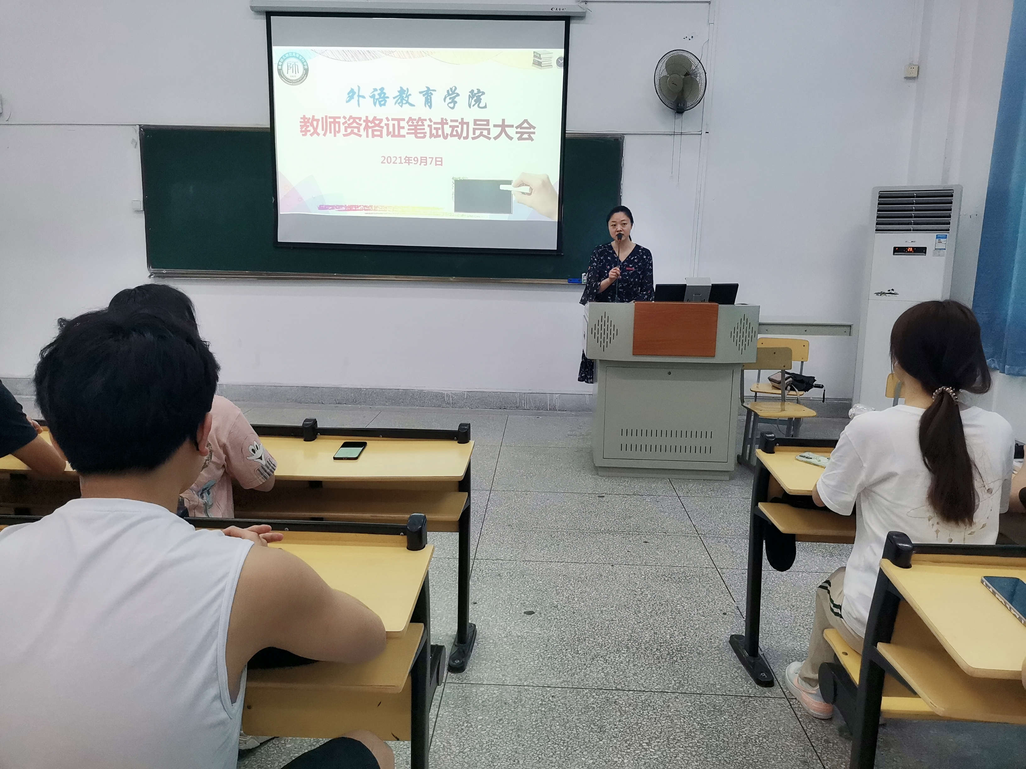 9月7日上午,外语教育学院为19级英语教育专业学生召开教师资格证笔试动员大会。陈文华副院长首先肯定了教资辅导小组教师以及19级全体学生在假期为备考付出的努力。叶一青副院长从教资笔试的重要性以及目前的就业形势等几方面为19级学生作了动员讲话。随后,教资辅导专项小组组长张小莉老师为学生做了考前具体辅导安排。
