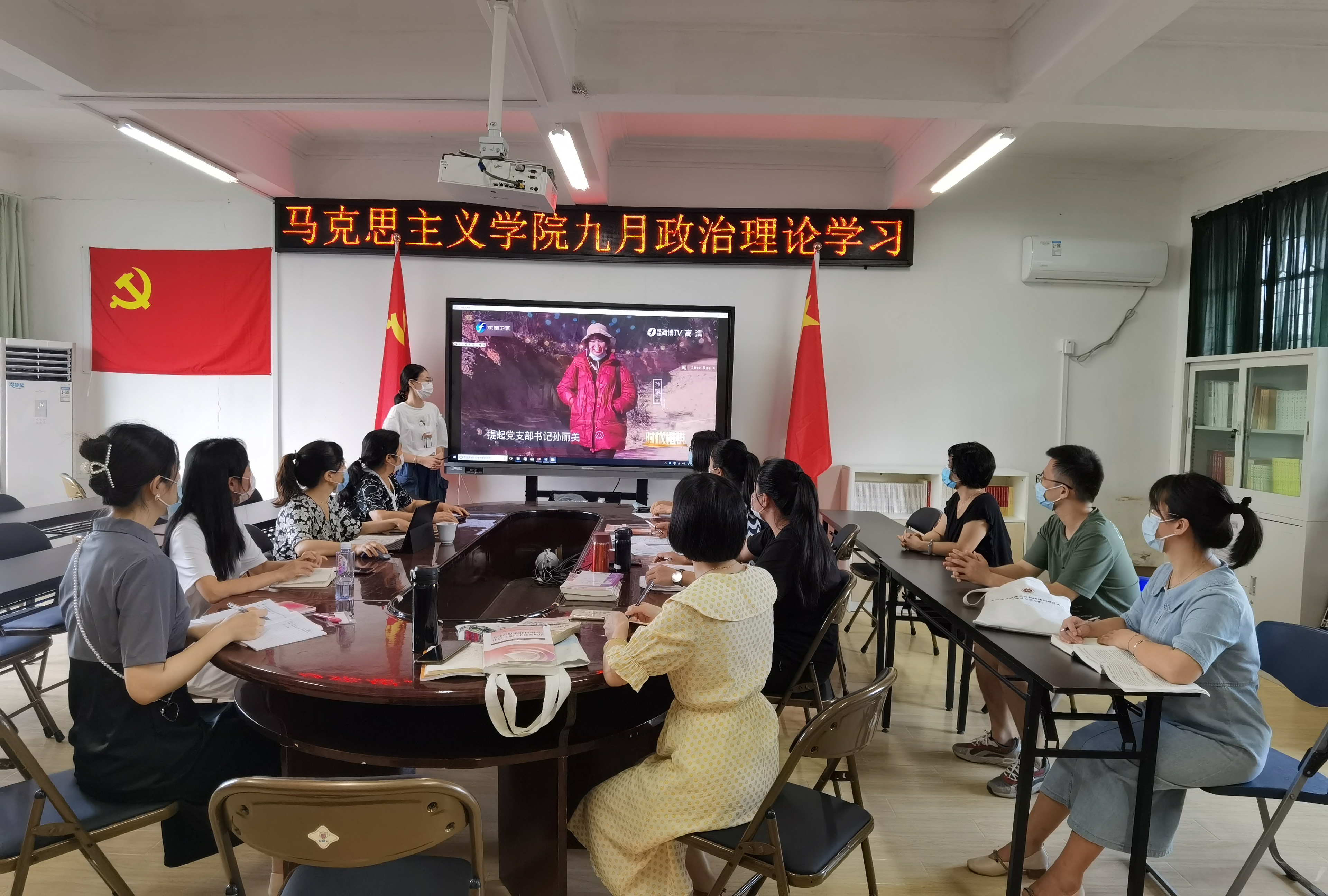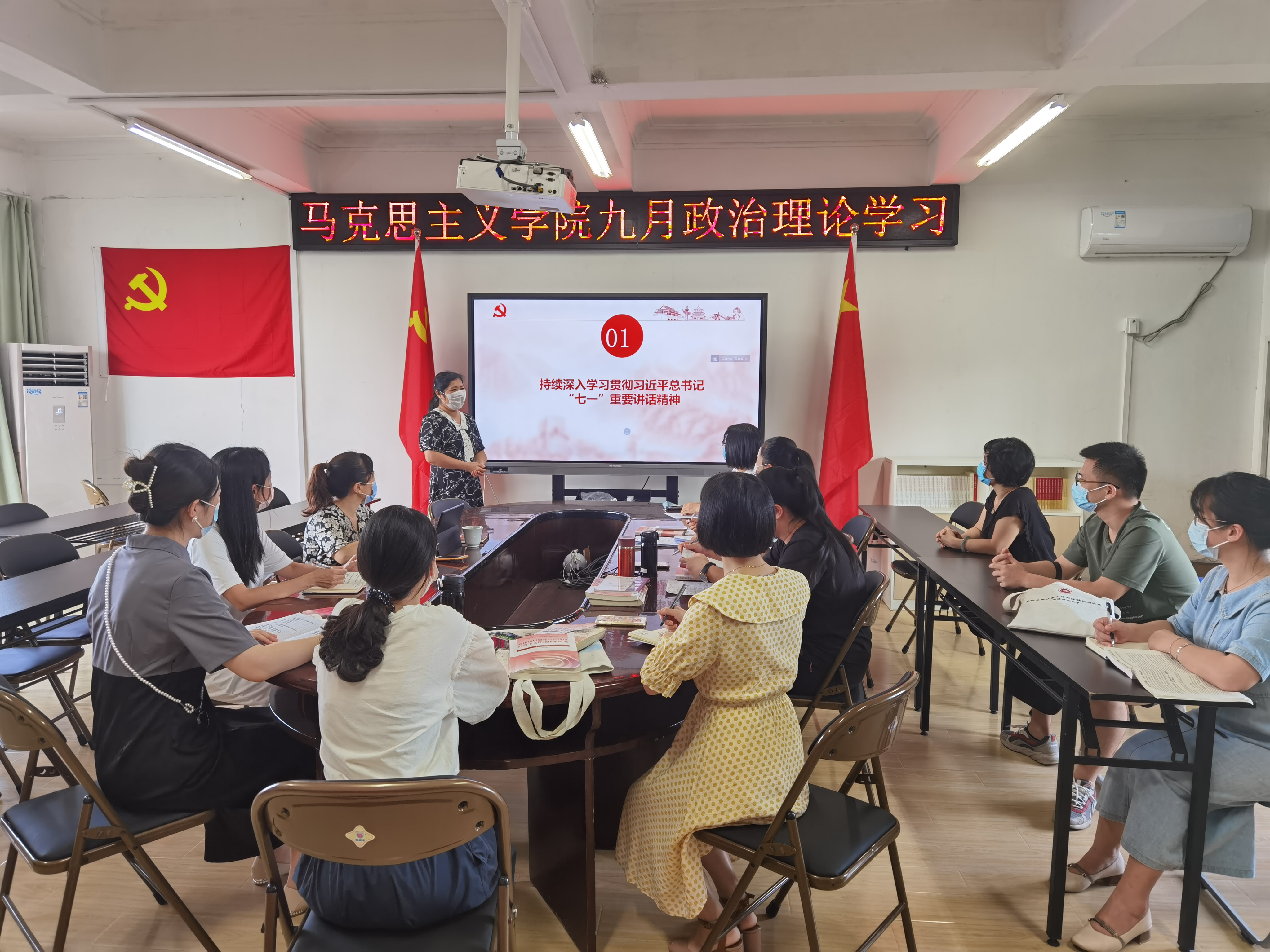 2021年9月15日,马克思主义学院组织全体党员教师于学院会议室开展九月政治理论学习暨党史学校教育主题党日活动。此次学习由党员教师郑丽萍、李缀分别担任主讲。
