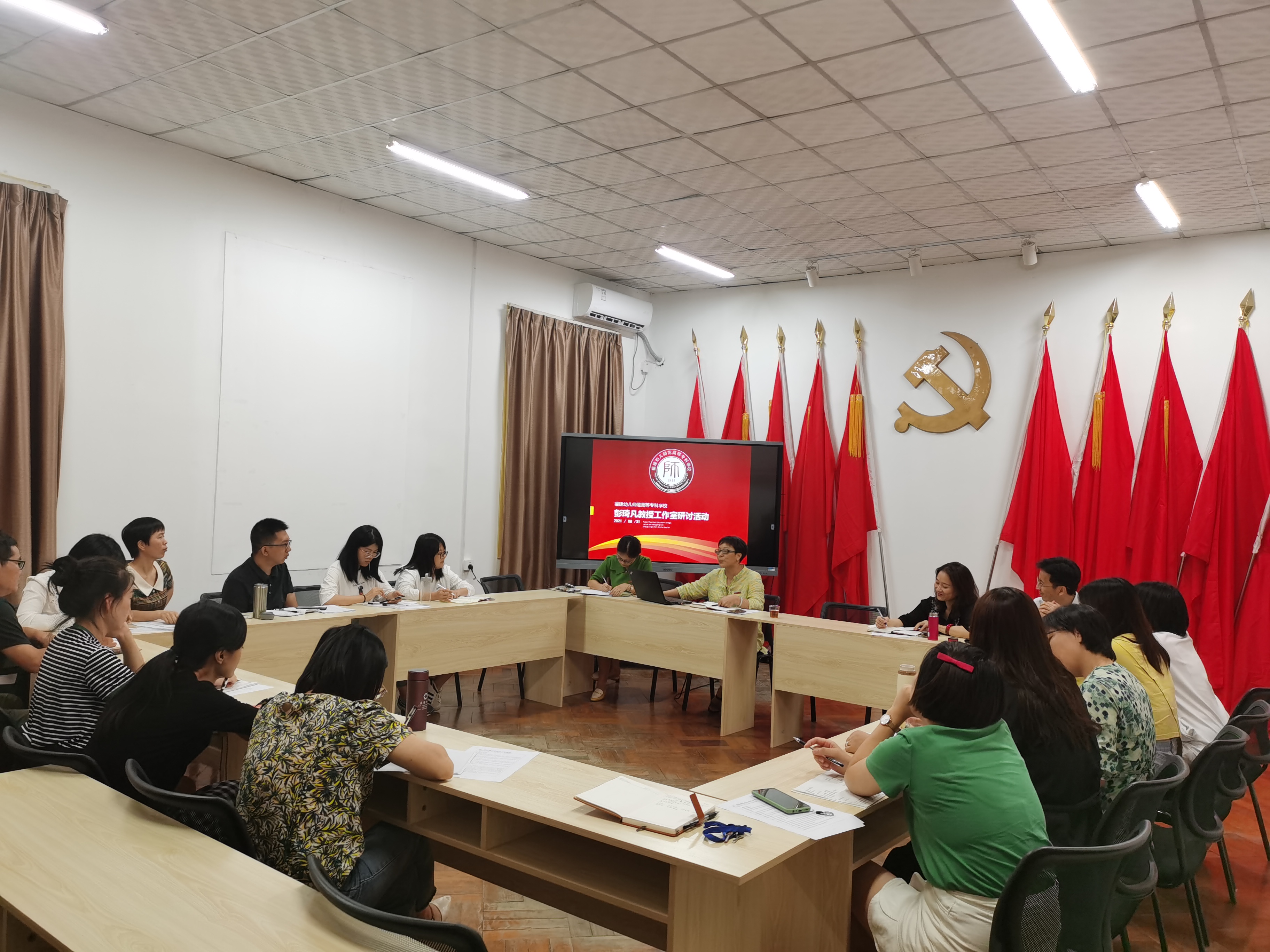 彭琦凡教授长期致力于福建省幼儿园教师、园长专业发展的研究与支持,深耕幼儿园保教建设,"突破知能转换瓶颈的研究型幼儿教师分层培训体系构建与实施"荣获首届福建省基础教育教学成果特等奖。彭琦凡教授工作团队申报表一提交,就同步启动了团队整合与培训质量分析会,引领团队成员以研究的视角审视分析教师、园长的专业知能与培训定位;组织团队成员学习团队建设目标与三年规划,指导成员制订个人三年专业发展规划;团队立项后,通过个人申报与遴选相结合的方式,确定了彭琦凡教授工作团队的三位秘书:学习型组织秘书许冰灵、学术秘书鲍钰清、行政秘书金檬檬,并研究策划了学期工作室工作重点与主要活动。彭琦凡教授表示,将带领团队立足学校社会服务与学前教育师资培训发展需要,增强服务全方位推进高质量发展超越能力,建设一支具有教育追求和专业信念、团结协作、研究方向明晰、梯队结构有序、发展潜力呈现的学前教育师资培训创新团队。