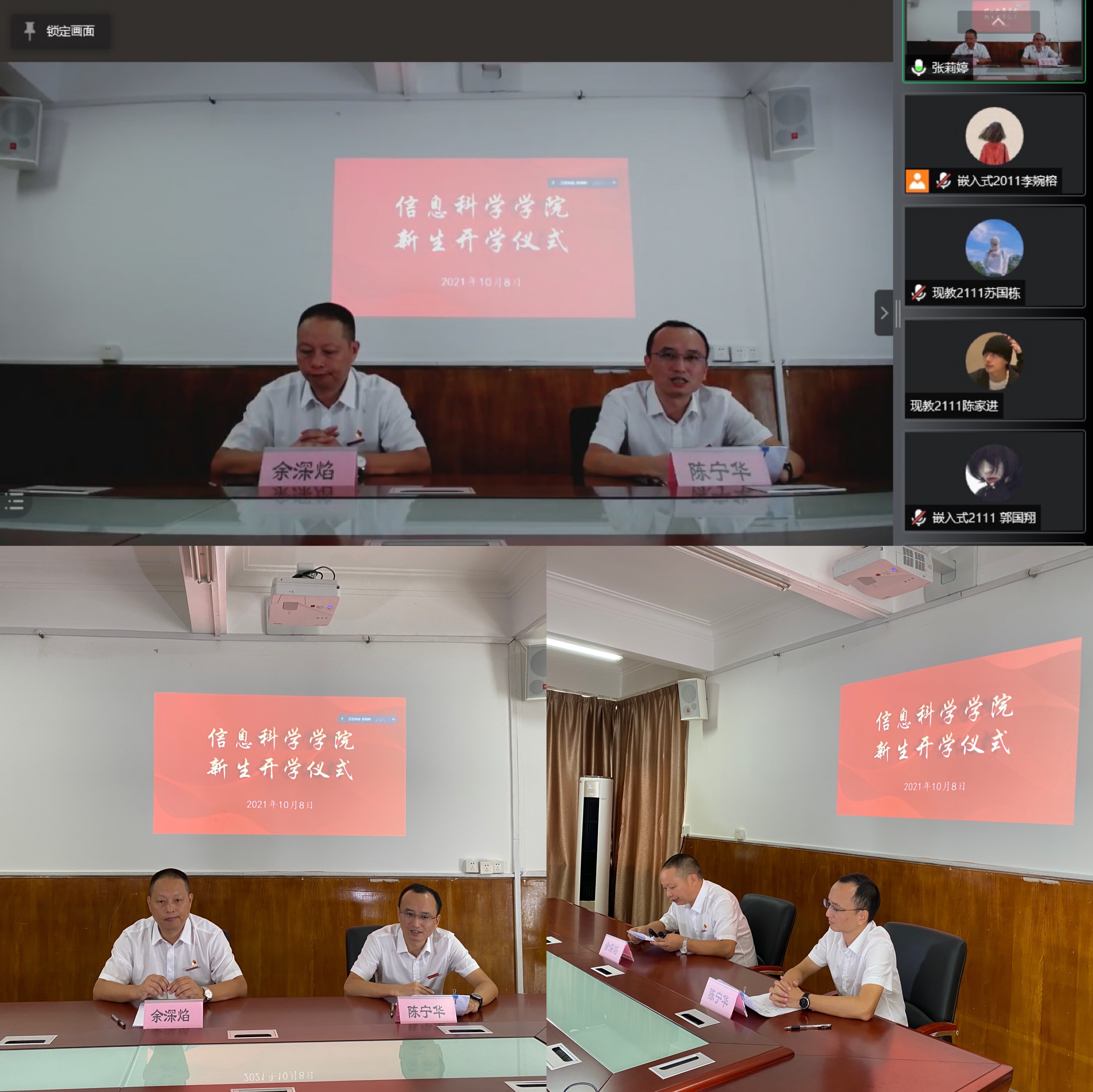 10月8日上午,信息科学学院2021级新生开学仪式暨新生教育活动第一课在线上隆重举行。学院班子成员、新生辅导员、秘书等出席会议。学生工作负责人林承杰主持会议。