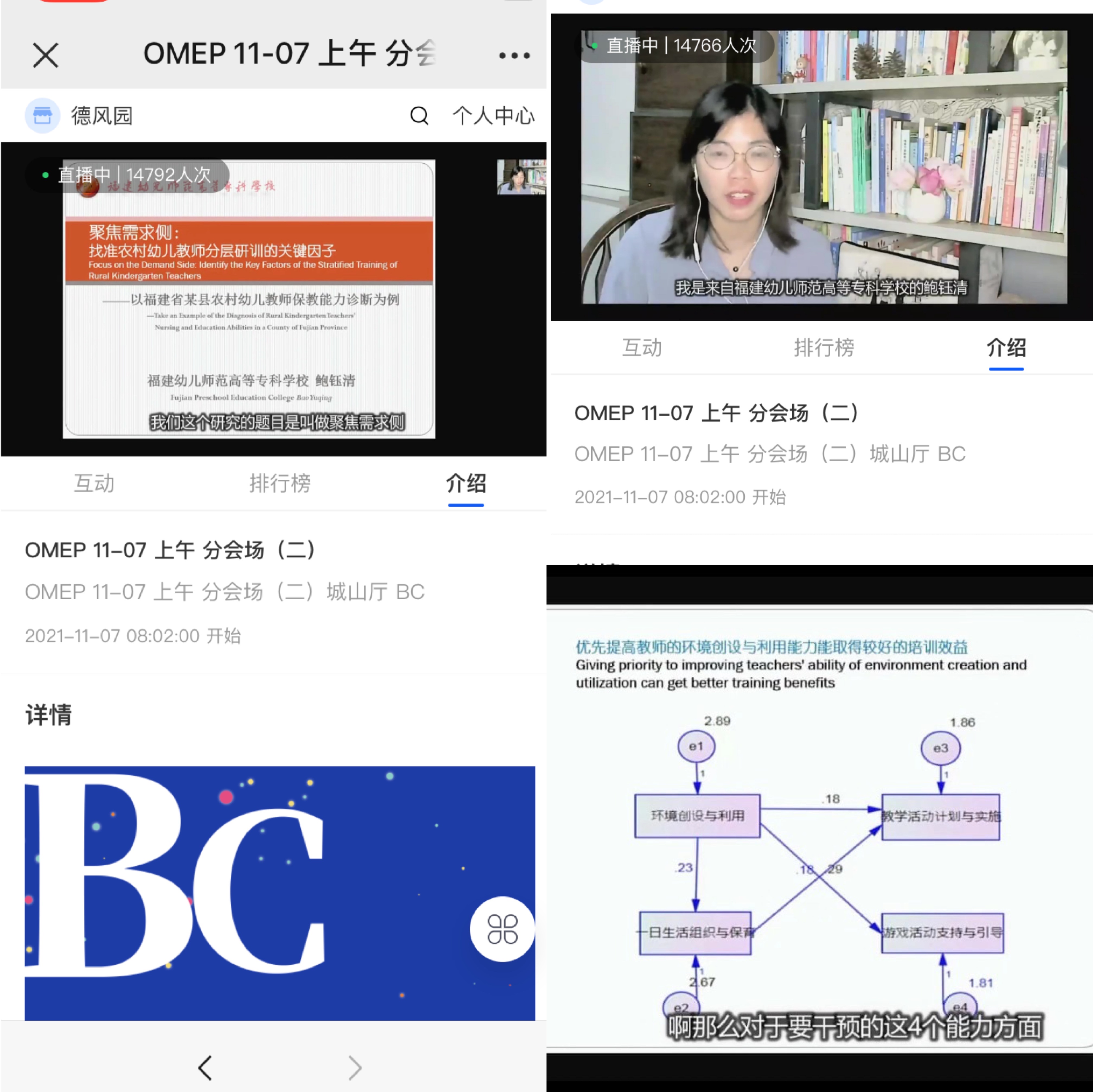 11月6至7日,以"幸福儿童、美好亚太"为主题的世界学前教育组织(OMEP)2021亚太区域研讨会在杭州举办。我校鲍钰清老师应邀在大会分论坛作《聚焦需求侧:找准农村幼儿教师分层研训的关键因子——以福建省某县农村幼儿教师保教能力诊断为例》研究报告,14792人通过在线直播的方式聆听了报告。