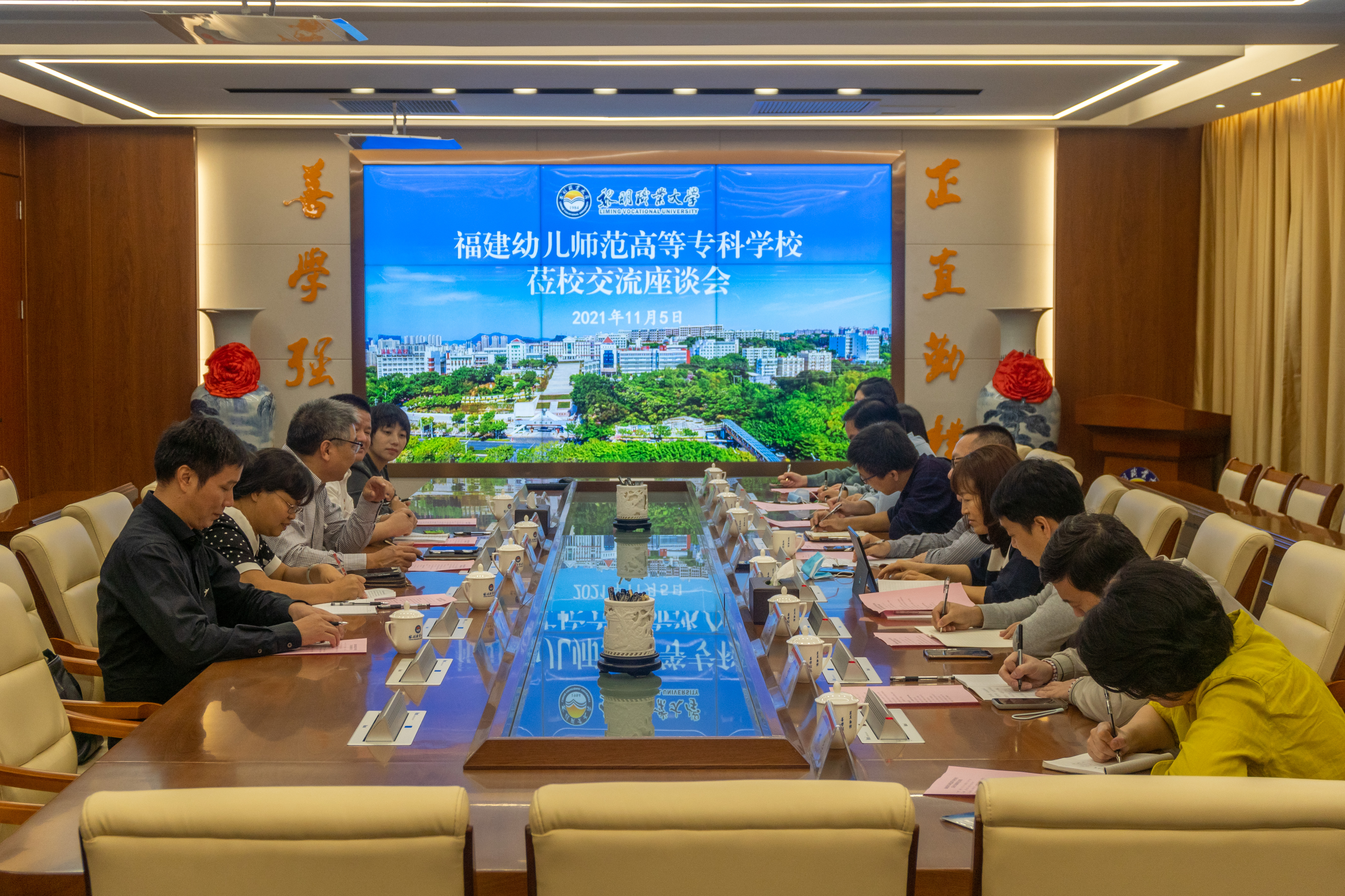 2021年11月5日,在校党委副书记邹雄伟的带领下,马克思主义学院院长伊文婷、教师陈雨露以及校学工部、团委、双创中心等一行人赴黎明职业大学交流学习。黎明职业大学党委书记王松柏、副校长余大杭以及马克思主义学院院长李淑娥等热情接待了我院参访人员。
