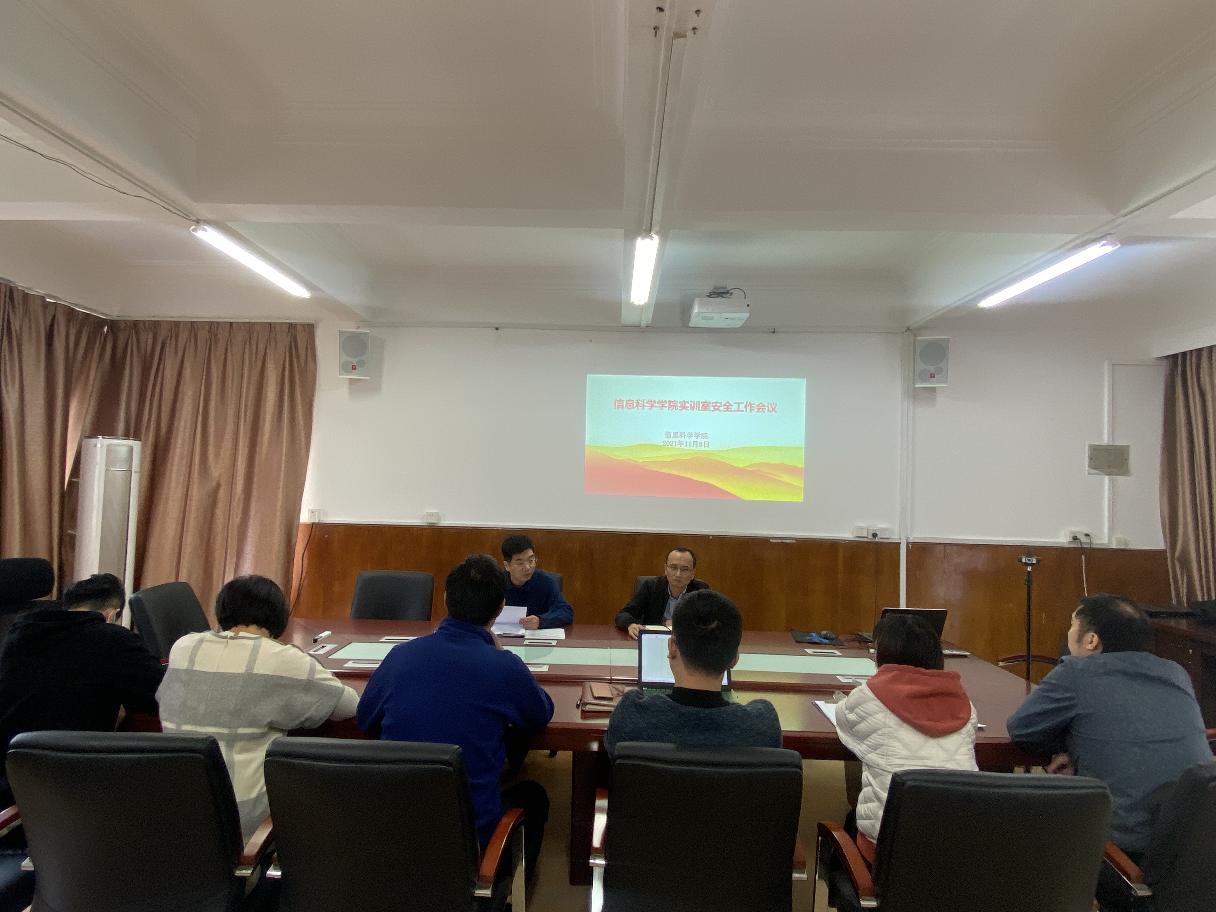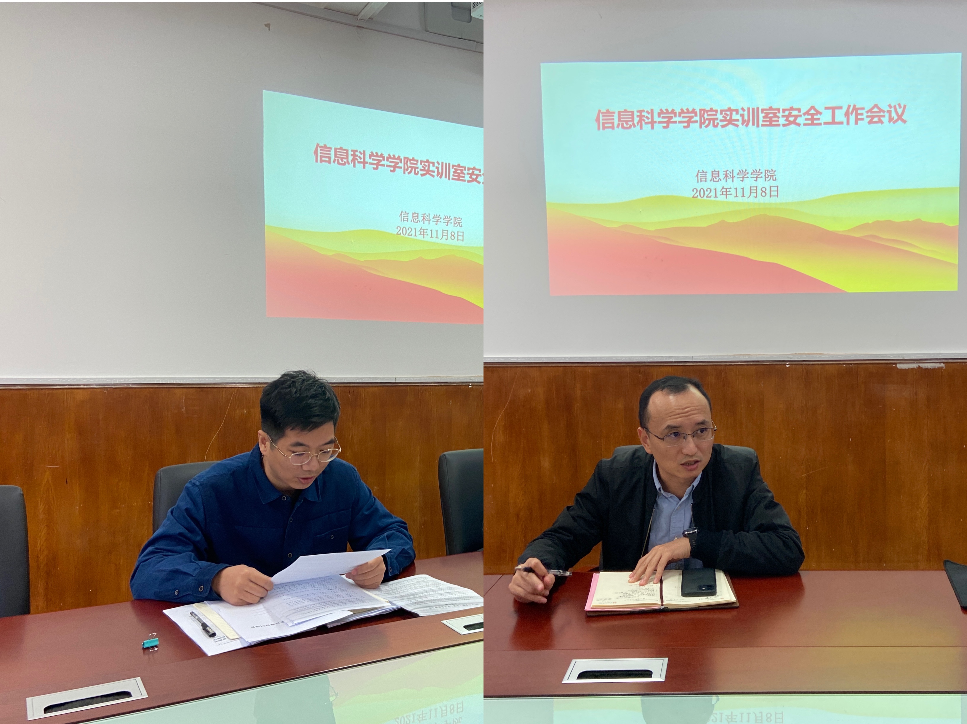 为切实做好实训室安全管理工作,信息科学学院于11月8日下午在院部306会议室召开实训室安全工作专题会议。陈宁华院长、刘建炜副院长、实践教研室卓皓主任、王秀英老师以及各实训室管理员参加会议。