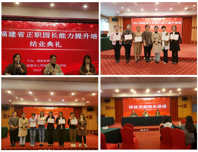 2021年11月10日上午,由福建省教育厅主办、我校承办的"2021年福建省'为民办实事·幼教师资提质工程'——福建省幼儿园正职园长能力提升培训"在福州圆满结束,来自全省各地市的98位学员顺利结业。