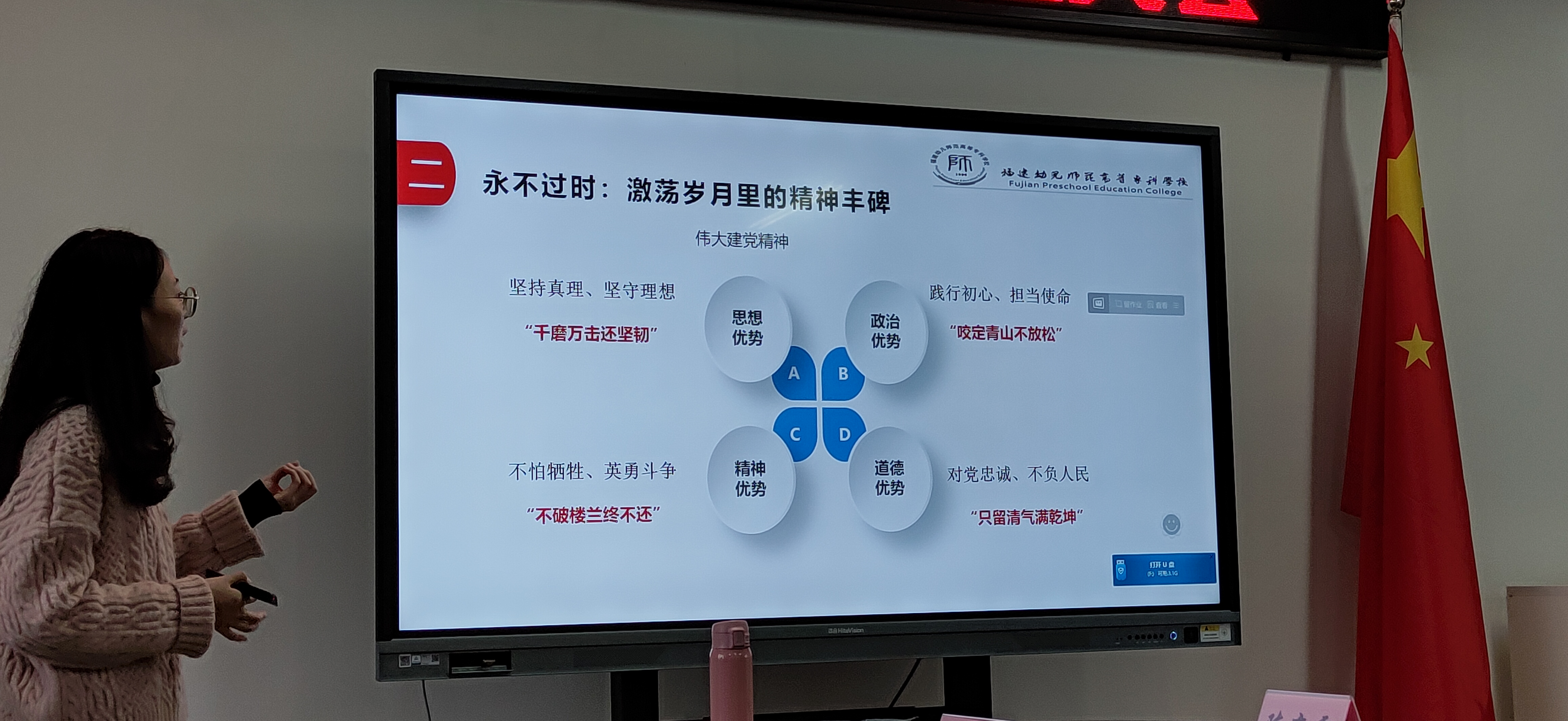 活动伊始,读书社指导教师李缀以《福建红色文化读本 》第四章气壮山河的革命英雄为题开展十一月读书导读活动。她围绕"血与火铸就的革命英雄"、"激荡岁月里的精神丰碑"、"成长领航中的不竭动力"三部分内容,为在座同学讲述了福建红色人物林祥谦、项与年、王鸿章及刘亚楼的人物生平及革命故事。在她的讲授中,一个个坚持真理、坚守理想的先锋斗士跃然耳畔;一个个不畏牺牲,敢于斗争的红色楷模浮现眼前;一个个对党忠诚、不负人民的民族卫士印刻脑海。在聆听完福建红色人物故事后,同学们备受鼓舞也倍加珍惜今日之国家、今日之生活,纷纷表示青年大学生要深入学习并承继中国共产党人的精神谱系,脚踏实地逐梦远航,担当时代大任做时代新人。