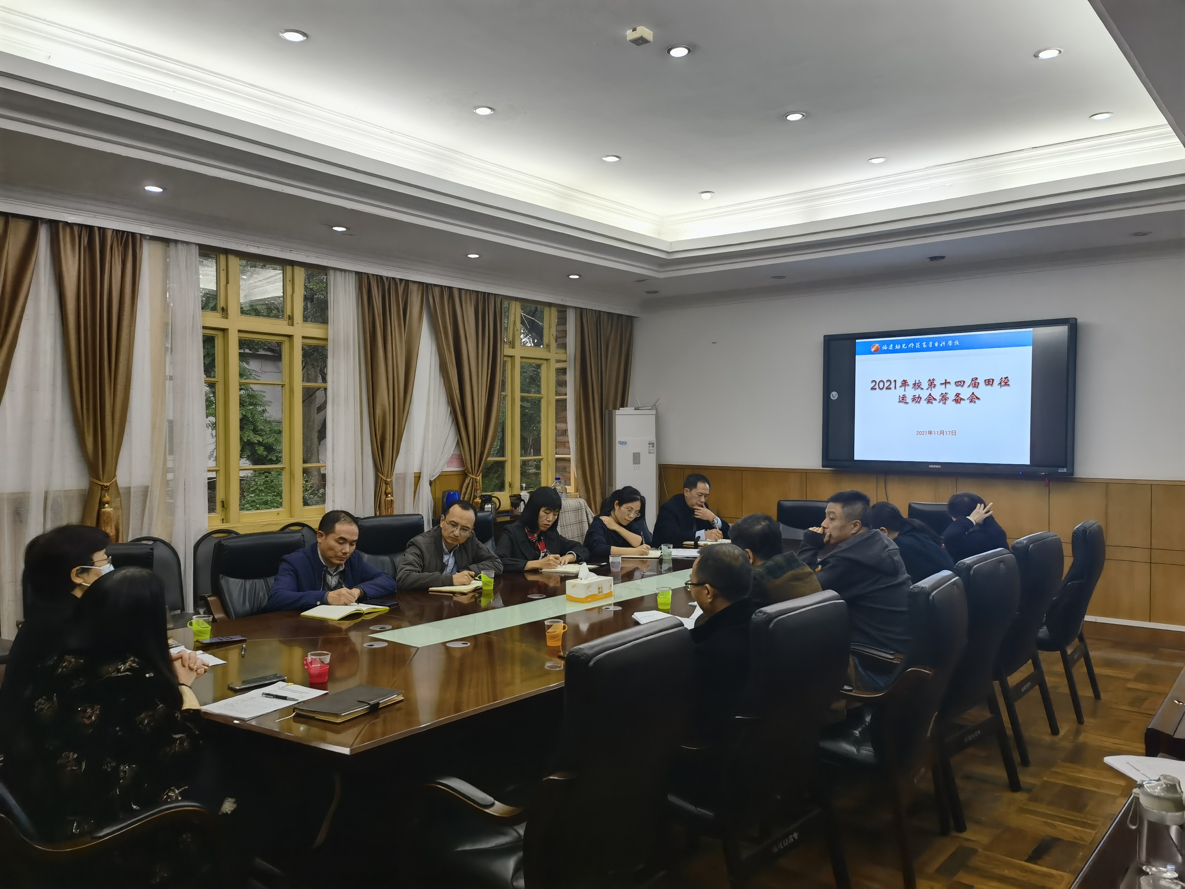 为确保我校第十四届田径运动会安全有序进行,11月17日下午,2021年第十四届校田径运动会筹备会在行政楼303会议室召开。陈峰校长、郑晓生副校长、学校党政办、学工部、教务处、团委、后勤处、保卫处等相关职能部门和各学院院长出席了会议,会议由郑晓生副校长主持。