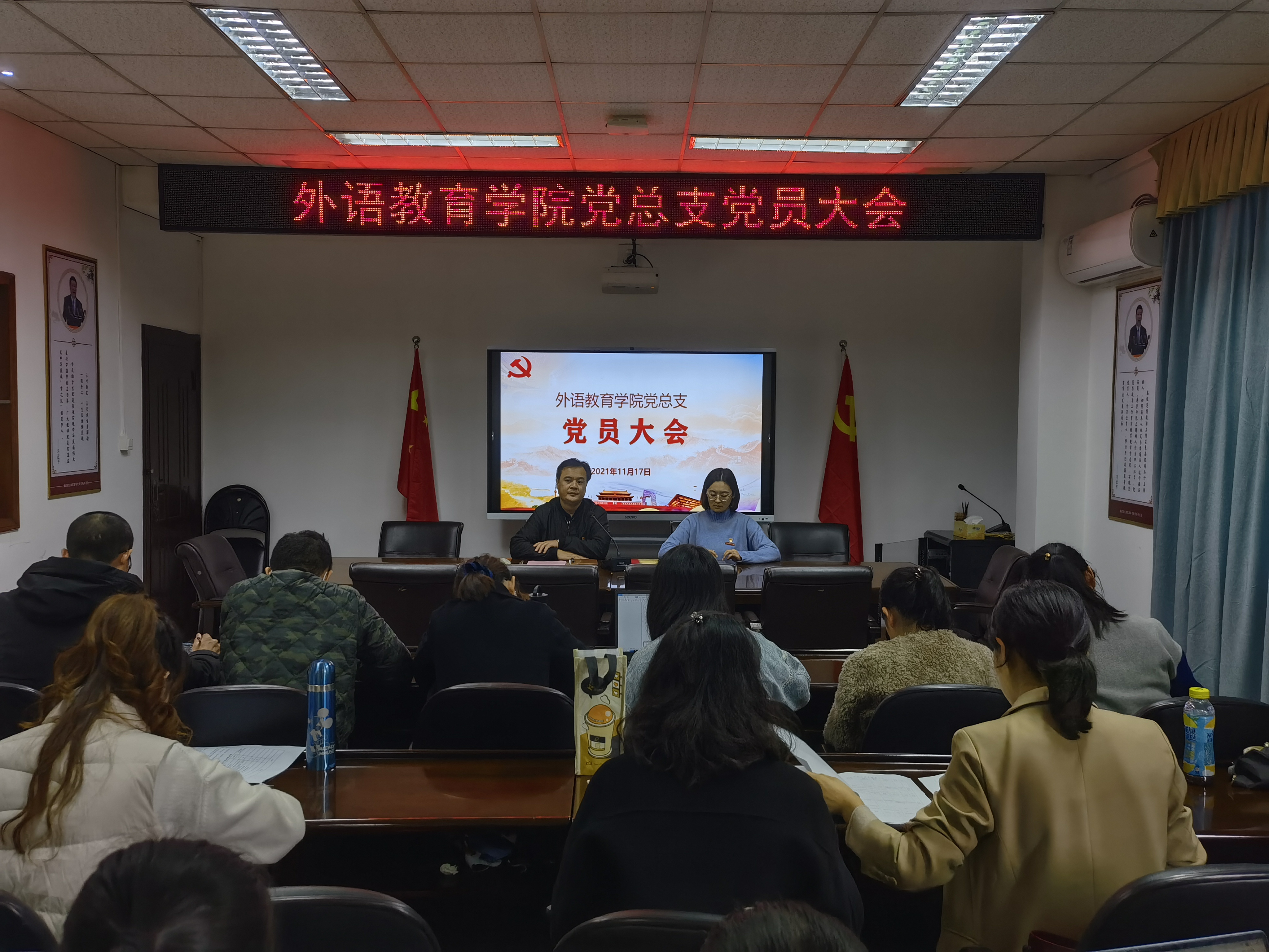为进一步加强党的基层组织建设,根据《中国共产党章程》和《中国共产党组织工作条例》有关规定,经校党委批准,外语教育学院与11月17日下午召开党员大会增补总支委员。大会由林祥昊书记主持,全体党员参加。