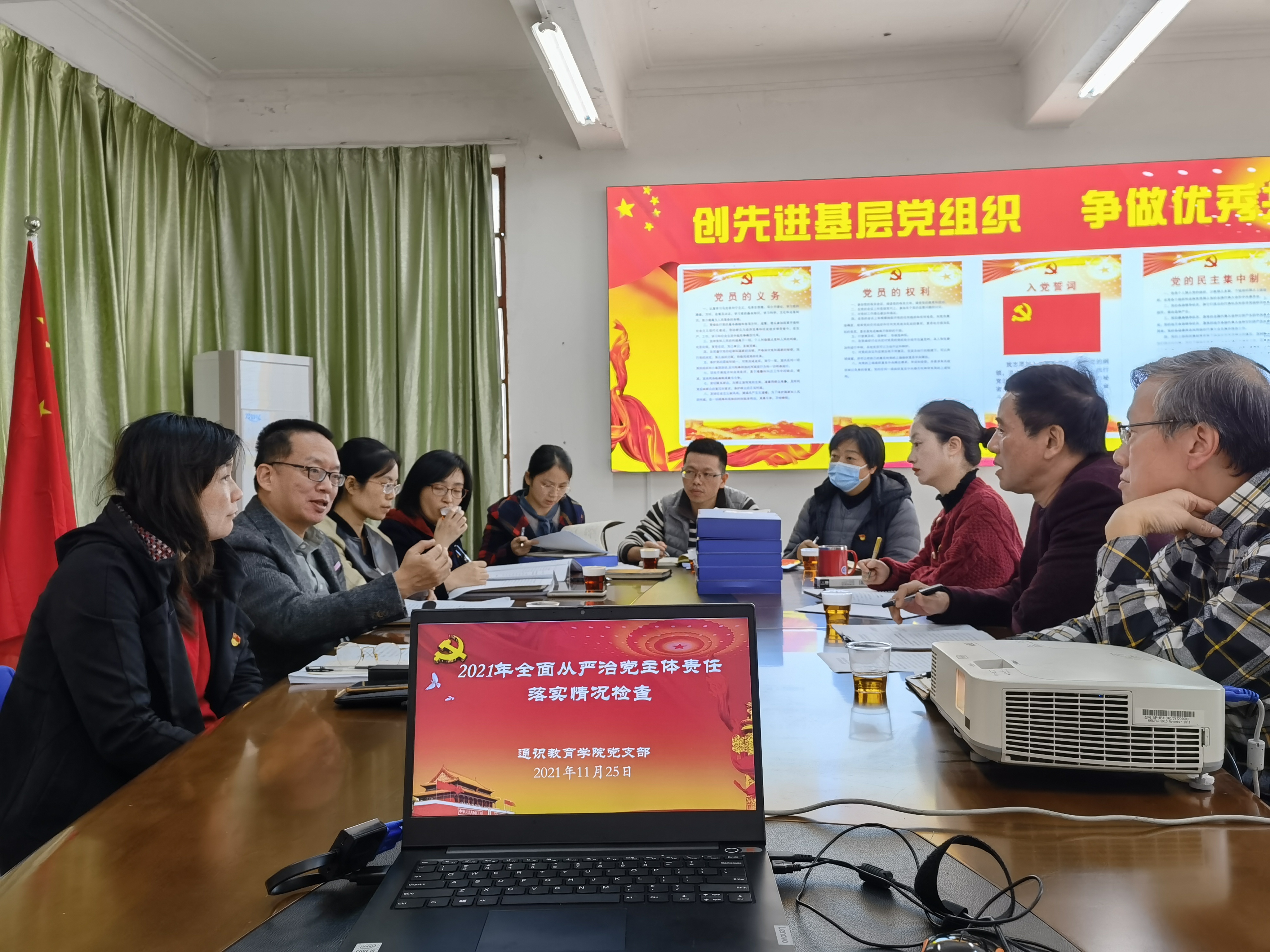 2021年11月25日下午,校党委副书记邹雄伟带领校组统部、纪委、宣传部、党政办等四部门人员莅临通识教育学院协同开展2021年度全面从严治党主体责任落实情况检查指导工作。