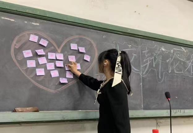 在社团课正式开始前,三位社长针对辩论社发展情况进行了基本介绍,帮助社员们进一步了解辩论社。社团活动课分为"破冰之旅"、"心愿便利贴"、"主题辩论"三个环节。前两个环节中,新成员们通过自我介绍和开展游戏等项目有效地拉近了社员之间的距离。在"主题辩论"中,全体社员围绕"一见钟情和日久生情哪个更长久"论题展开辩论。现场气氛热烈,社员发言踊跃。