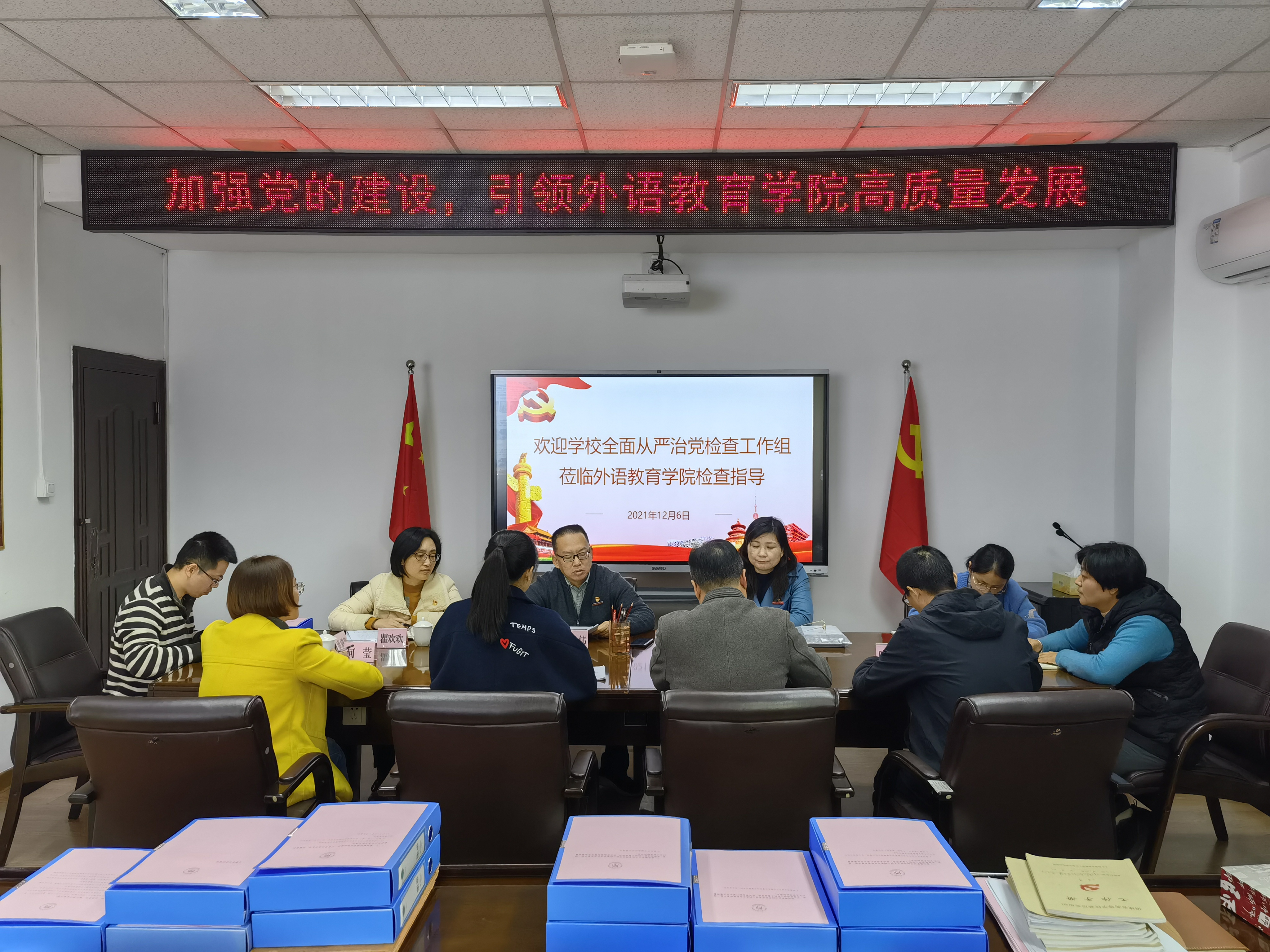 12月6日下午,校党委邹雄伟副书记带领校纪委、组统部、宣传部、党政办等部门的同志莅临外语教育学院,开展2021年全面从严治党主体责任落实情况专项检查。